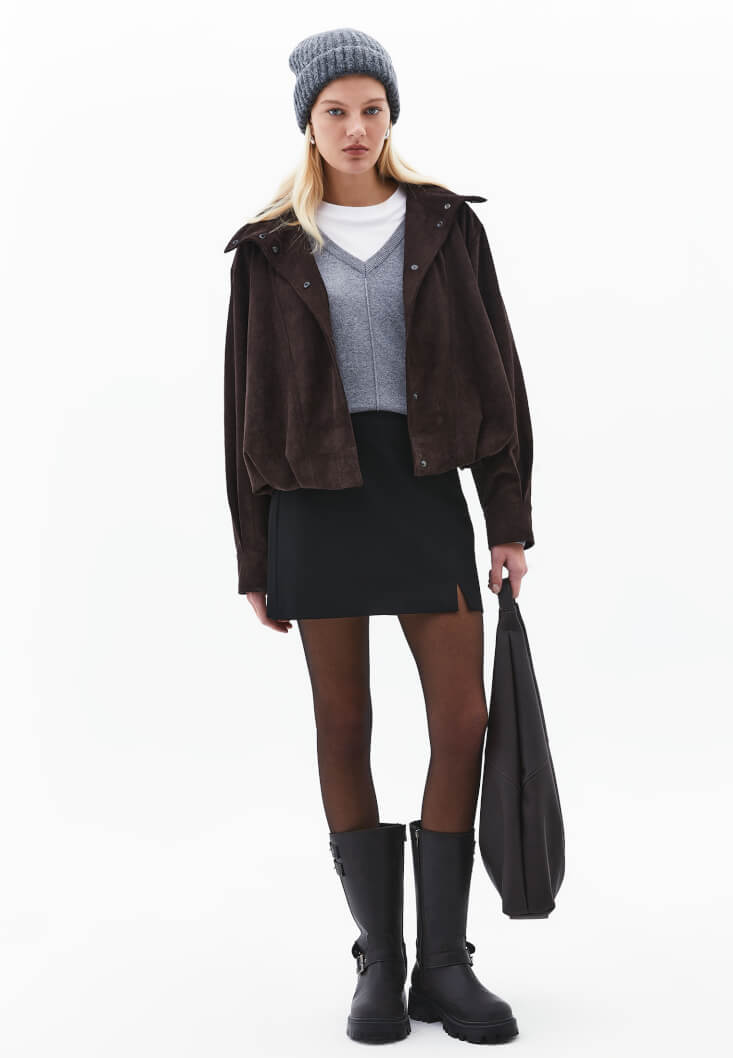 6. Şehirli, Cesur ve Sıcak: Mini Etek ve Kaşmir Dokunuşu