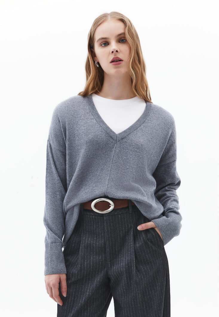 Kim demiş kışın mini etek giyilmez diye? Biz kuralları yıkmayı seviyoruz! Yırtmaçlı Mini Şort Etek üzerine giyeceğin Kaşmir Karışımlı Yün Kazak ile hem iddialı hem de son derece konforlu hissedebilirsin. Grinin en yumuşak tonuyla kaşmirin o eşsiz dokusu birleştiğinde, kışın en sert rüzgarları bile sana vız gelecek. Şık bir opak çorapla bu kombini tamamlayarak kışın en feminen halini sergileyebilirsin.