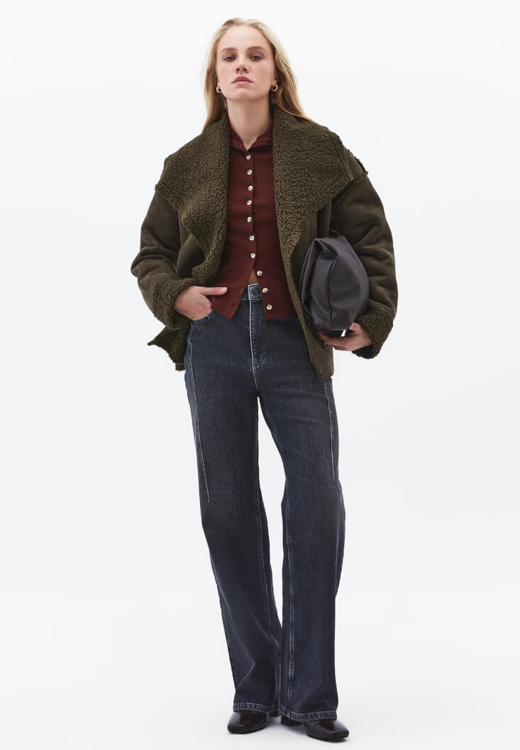 Farklı renkleri karıştırmayı sevenler için gri Straight Fit Denim Pantolon ile Çift Taraflı Giyilebilir Ceket birlikteliği tam bir görsel şölen sunuyor. Haki tonlarının doğayla bütünleşen güçlü tavrı ve ceketin çift taraflı kullanım avantajı, akıllı gardırop çözümünü en stil haliyle sunuyor. Bir gün maskülen bir hava yakalarken, ertesi gün ceketin diğer yüzüyle daha sakin bir görünüme bürünebilirsin. Bu kombin, OXXO kadınının o değişken ve enerjik ruhunu tam on ikiden vuruyor!