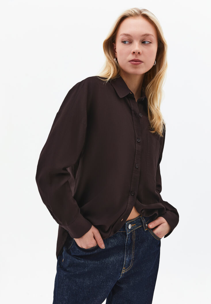 Rahatına düşkün ama şıklıktan da ödün vermeyenler buraya! Tencel™ içerikli Baggy Fit Pantolon sana gün boyu hareket özgürlüğü sunarken, üzerine alacağın Düğmeli Uzun Kaban silüetini anında yukarı taşıyacak. Bu monokrom yaklaşım, boyunu daha uzun gösterirken kahverenginin tüm asaletini üzerinde toplamanı sağlayacak.