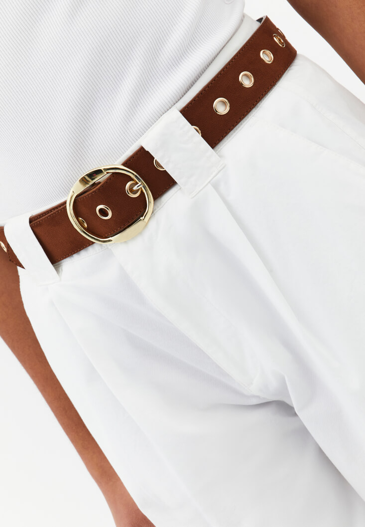 Her harika kombin, doğru aksesuarlarla parlar! Kahverenginin kontrast gücünü kullanmak istersen Askılı Omuz Çantası tam bir joker parça. Bu tonları desteklemek için ise Düz Babet ve pantolonlarına o vahşi ama şık dokunuşu katacak Tokalı Süet Kemer ile stilini mühürleyebilirsin.
