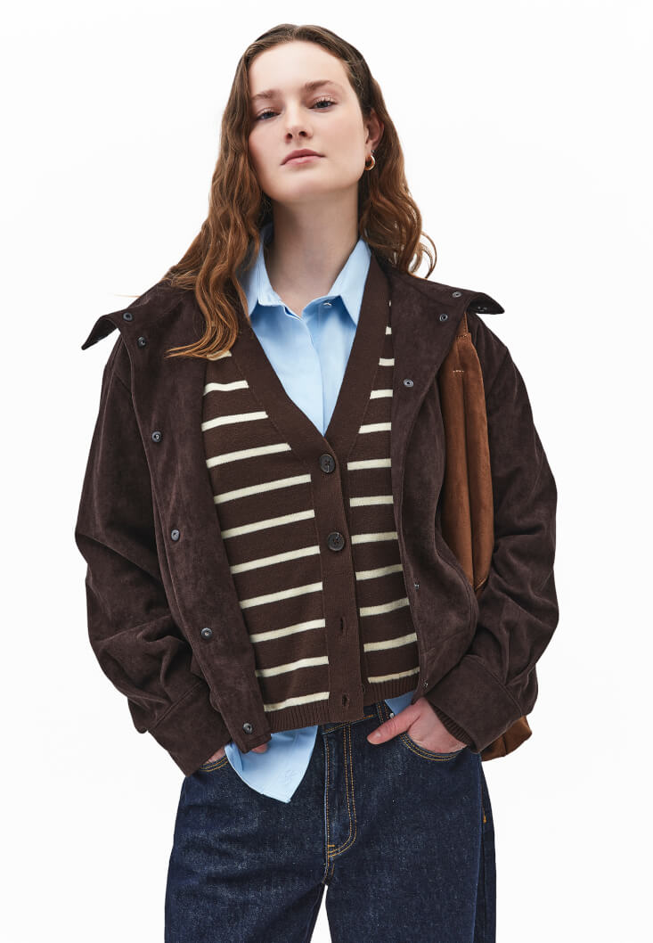 3. Retro Rüzgarlar: Süet Bomber & Çizgili Hırka