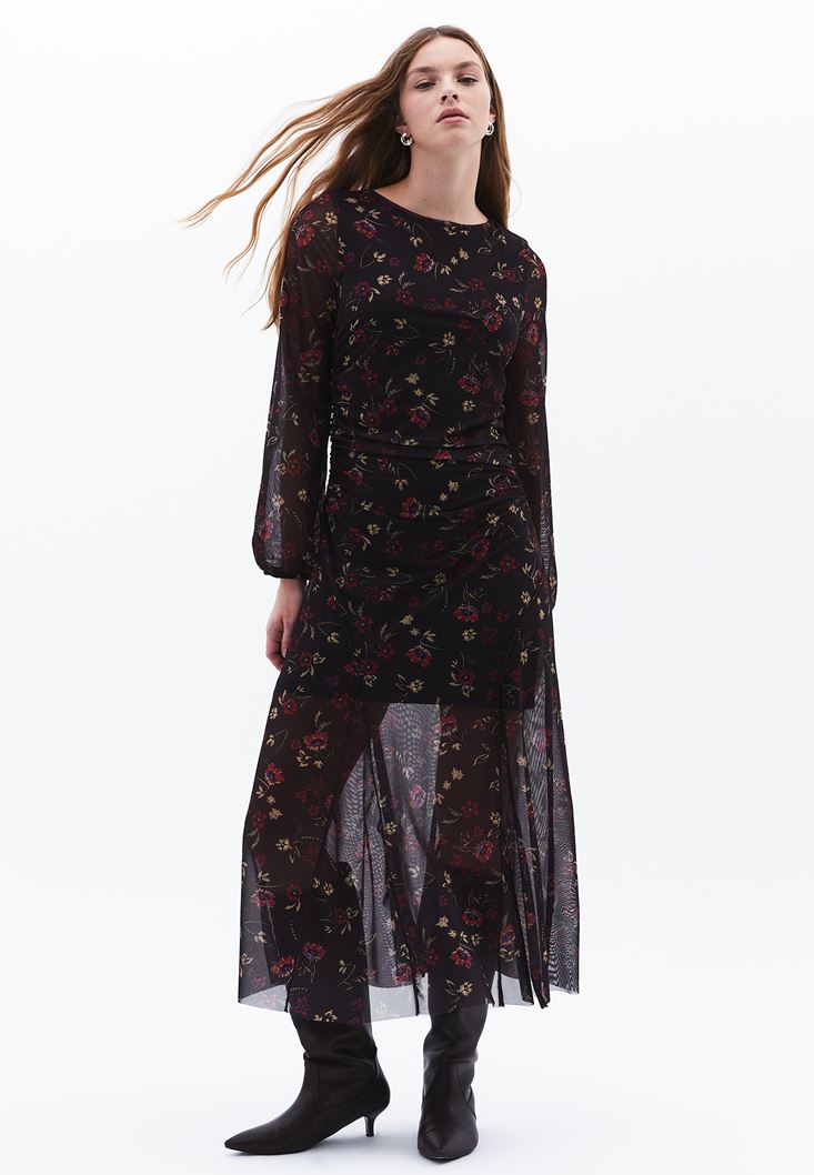 Floral desenler yaz aylarında bize harika bir şekilde eşlik etti… Şimdi sırada kışlık elbise kombinleri var! Soğuk günlerde elin sürekli koyu renklere gidiyor ama bir yandan da hareketli detaylar arıyor olabilirsin. Bunun için floral desenli bir elbise imdadına yetişebilir. Hatta sana önereceğimiz tül detaylı kışlık elbise modeli; aradığın birçok detayı sana bir arada sunduğu için çok hoşuna gidebilir. Floral desenle birleşen tül doku ve bu transparan görünümün yarattığı gotik etkiyi uzun çizmelerle ve vegan deri kabanlarla tamamlayabilirsin!💃