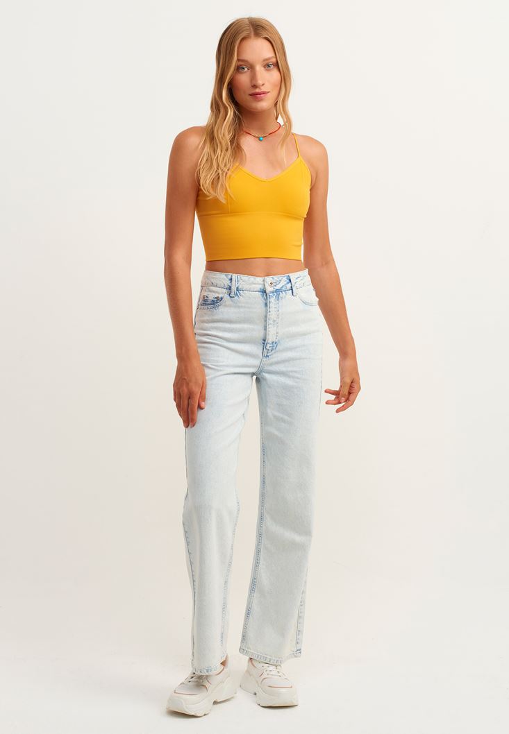 Crop Top ve Yüksek Bel Straight Pantolon Kombini
