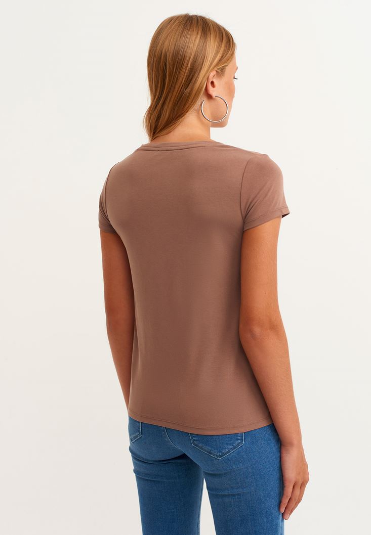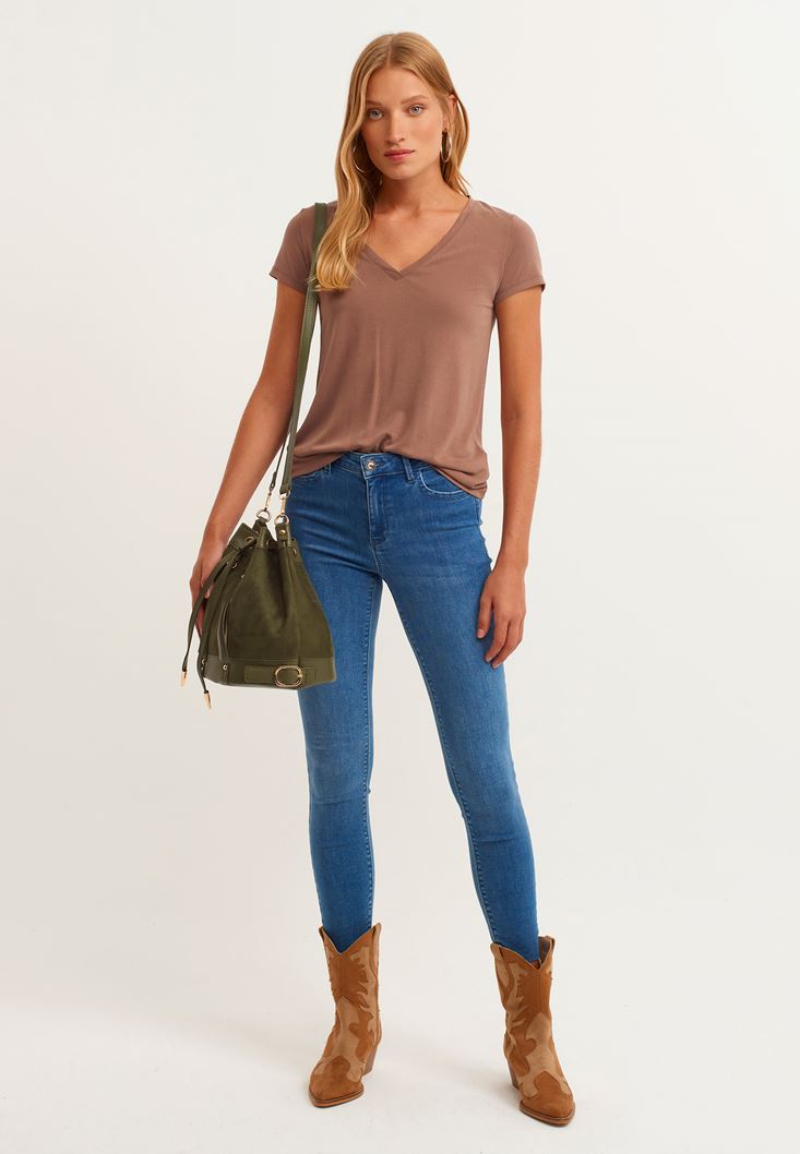 V Yaka Tişört ve Yüksek Bel Denim Pantolon Kombini