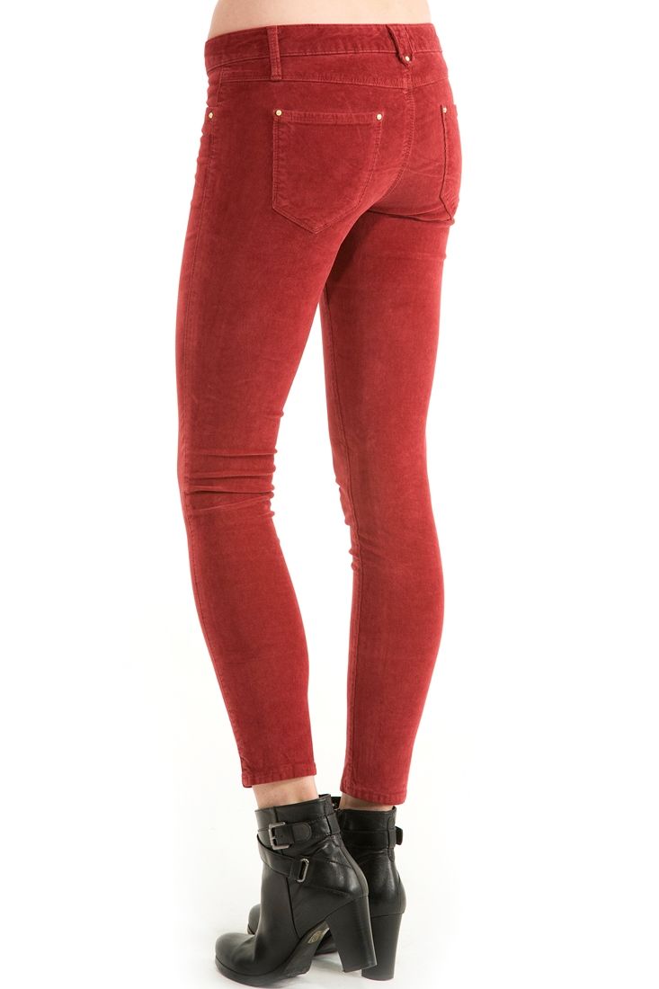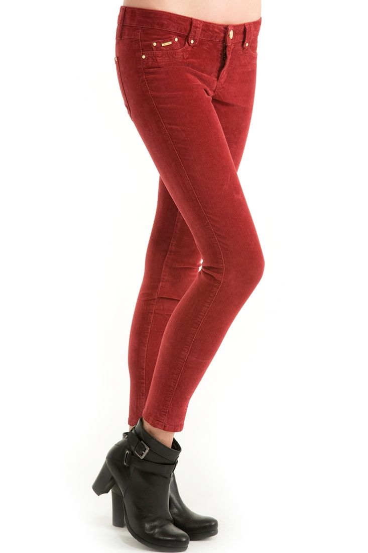 • Bayan Kırmızı  Kadife Dar Kesim Pantolon