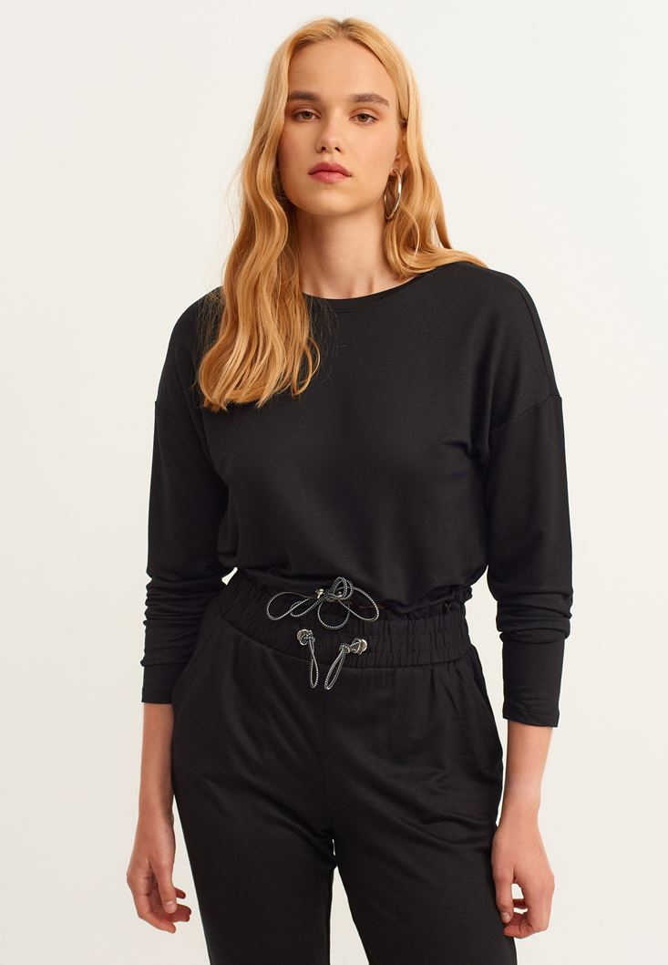 Bel Detaylı Sıfır Yaka Sweatshirt