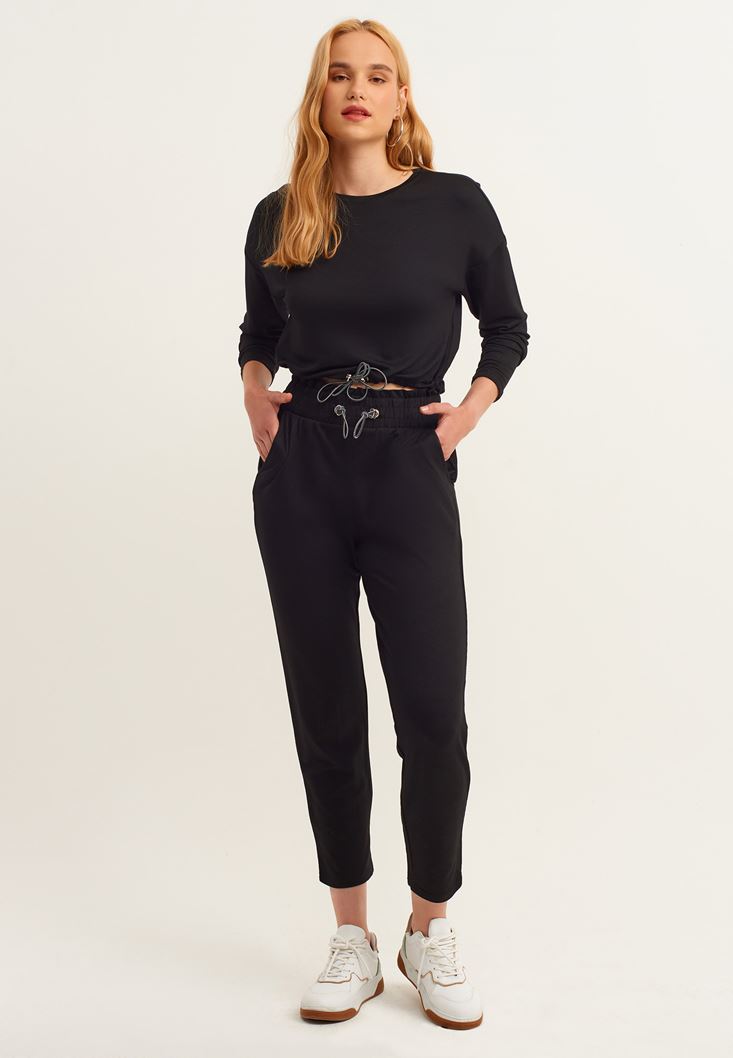Sıfır Yaka Sweatshirt ve Bel Detaylı Pantolon Kombini