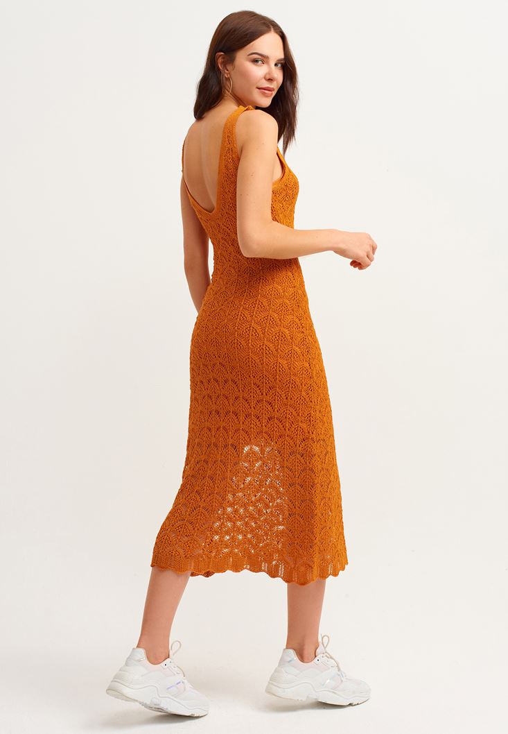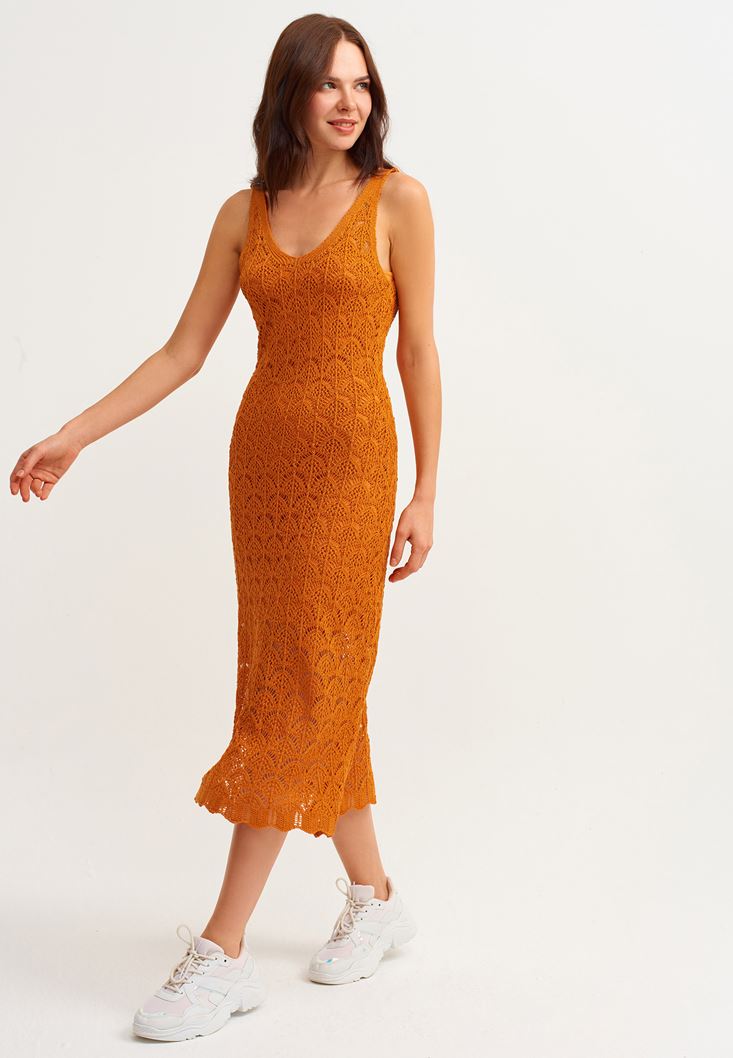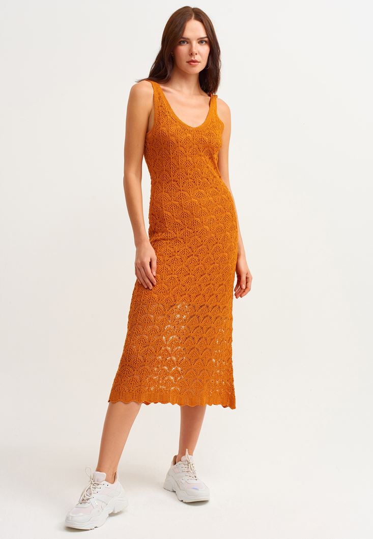 Turuncu Uzun Triko Elbise