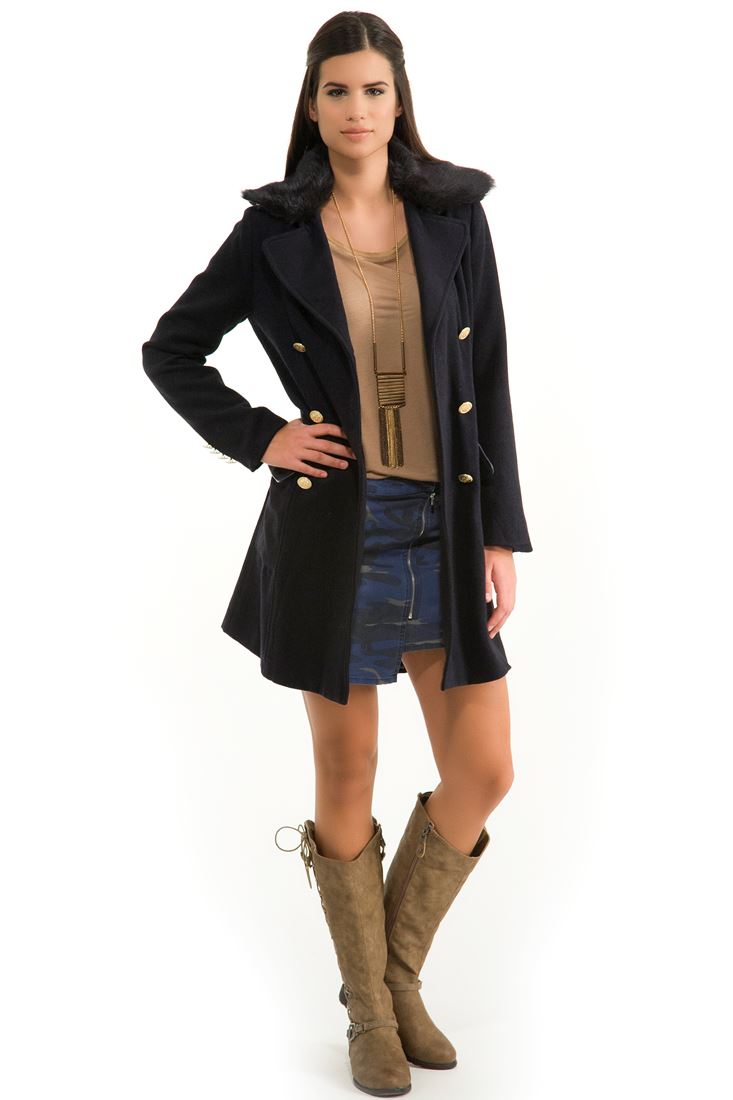 Lacivert Kamuflaj Desenli Etek