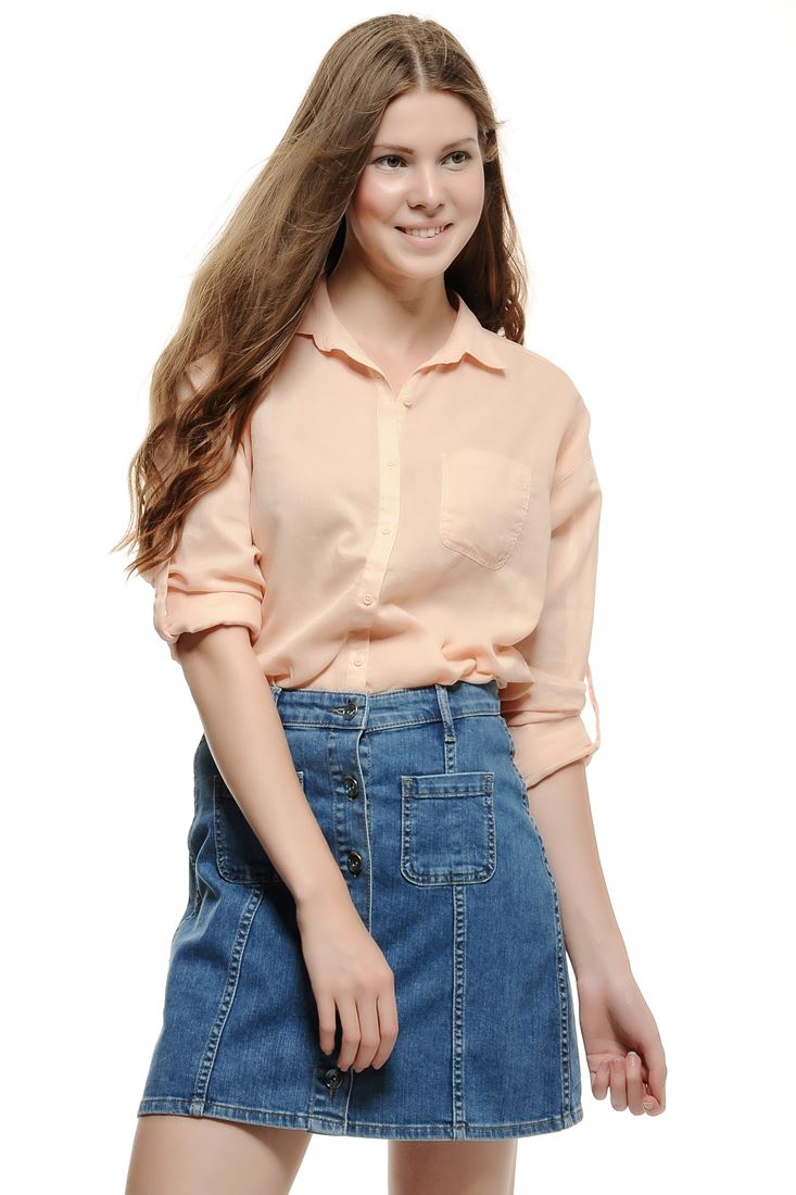 • Bayan Krem 3/4 Kollu Tunik Gömlek