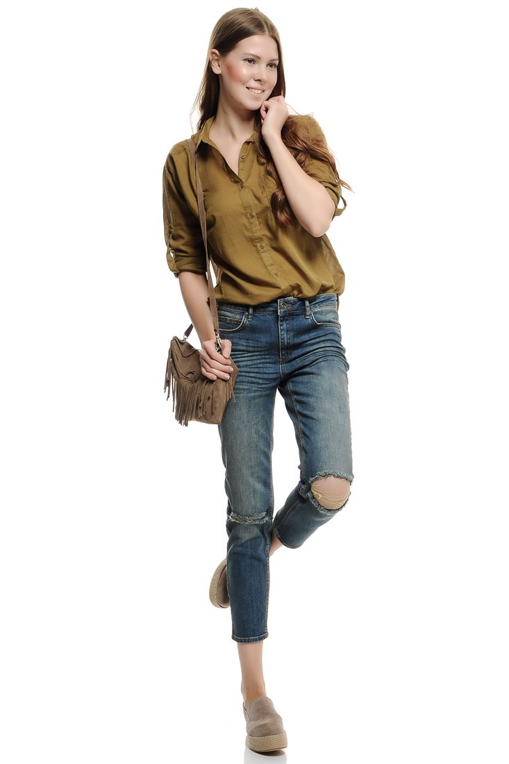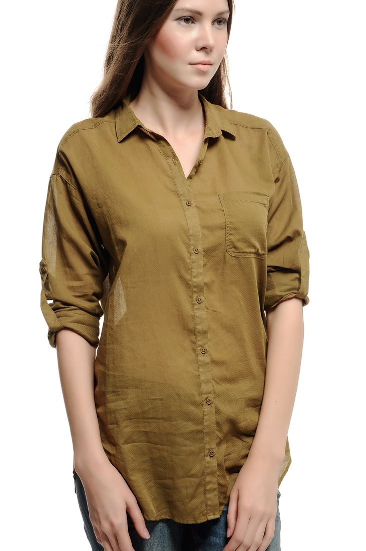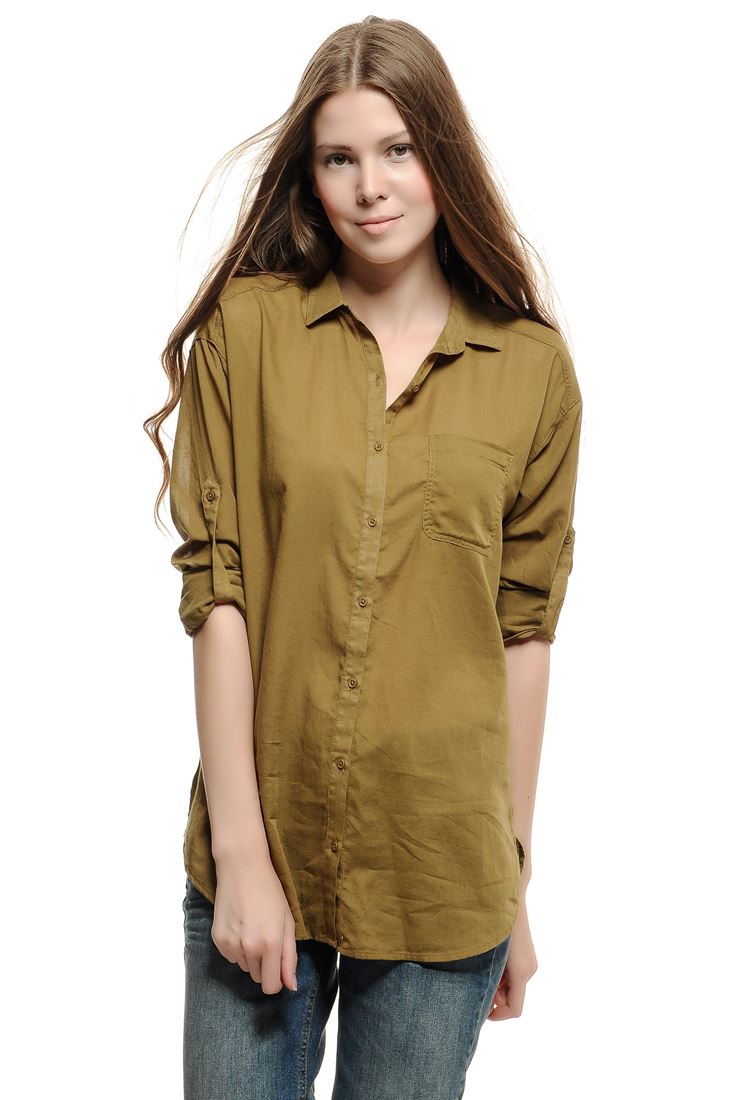 • Bayan Yeşil 3/4 Kollu Tunik Gömlek