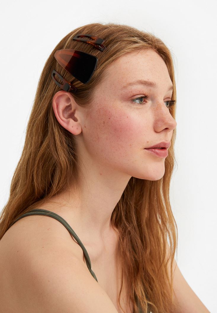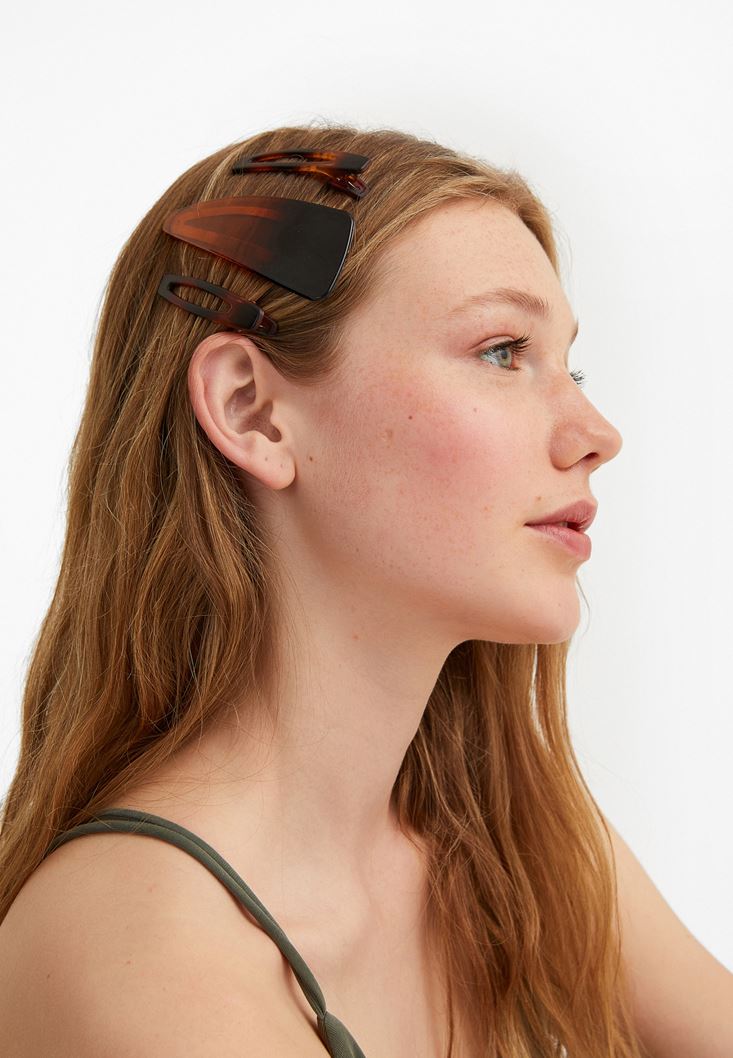 • Bayan Kahverengi 3'lü Saç Tokası Seti