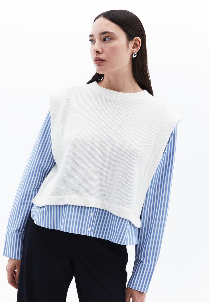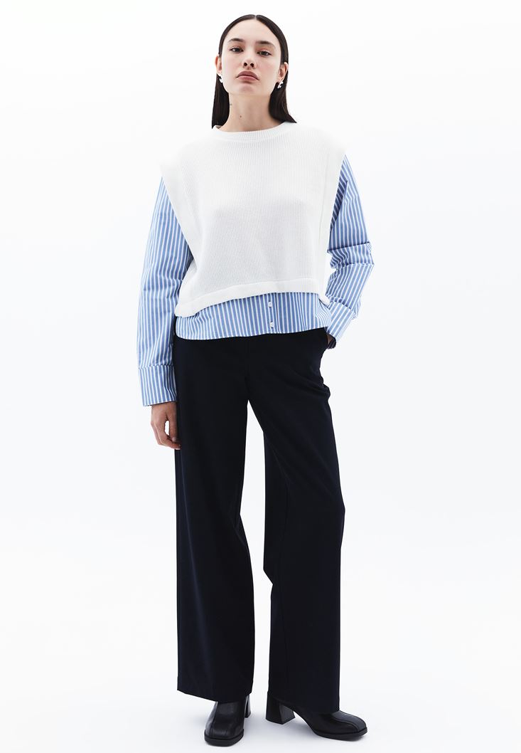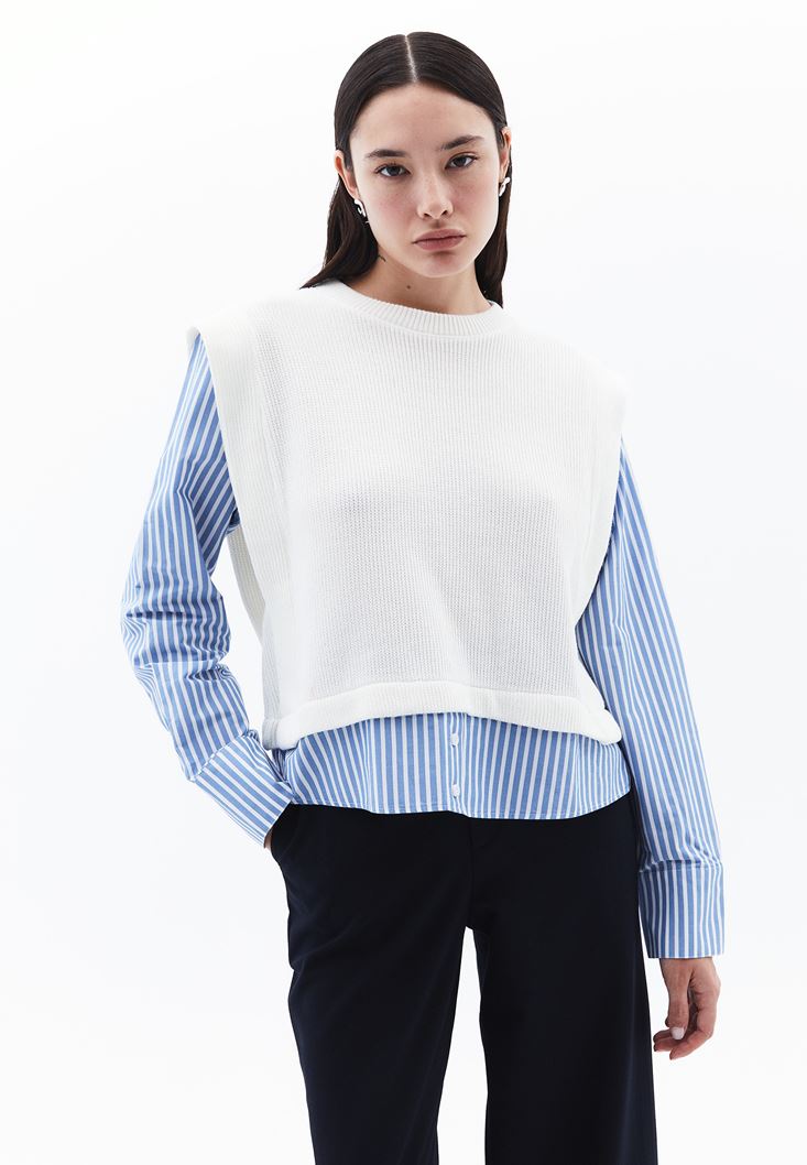 Gömlek Kollu Kazak ve Pantolon Kombini