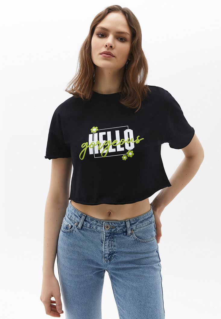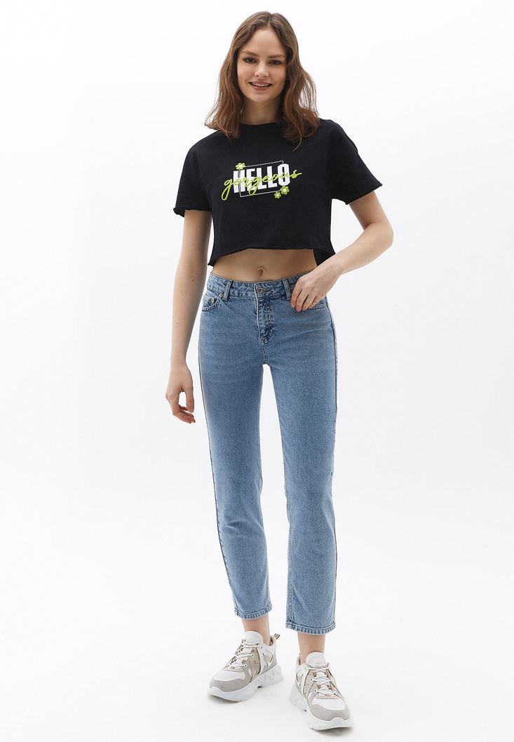 Baskılı Tişört ve Ultra Yüksek Bel Pantolon Kombini