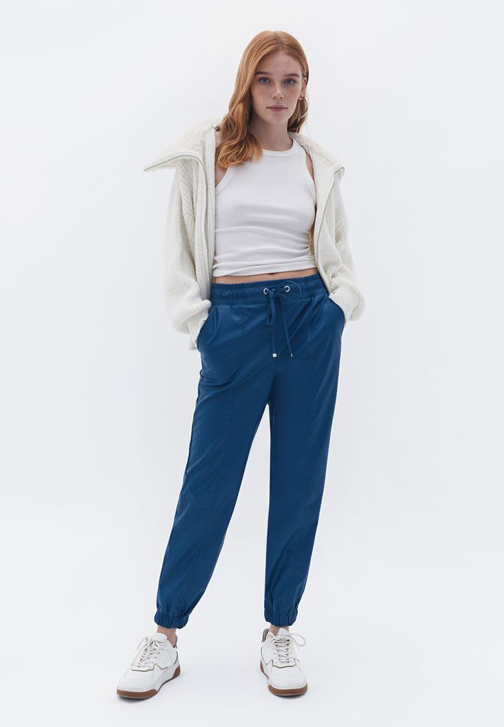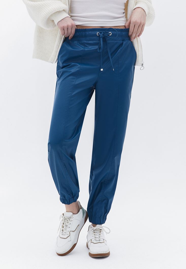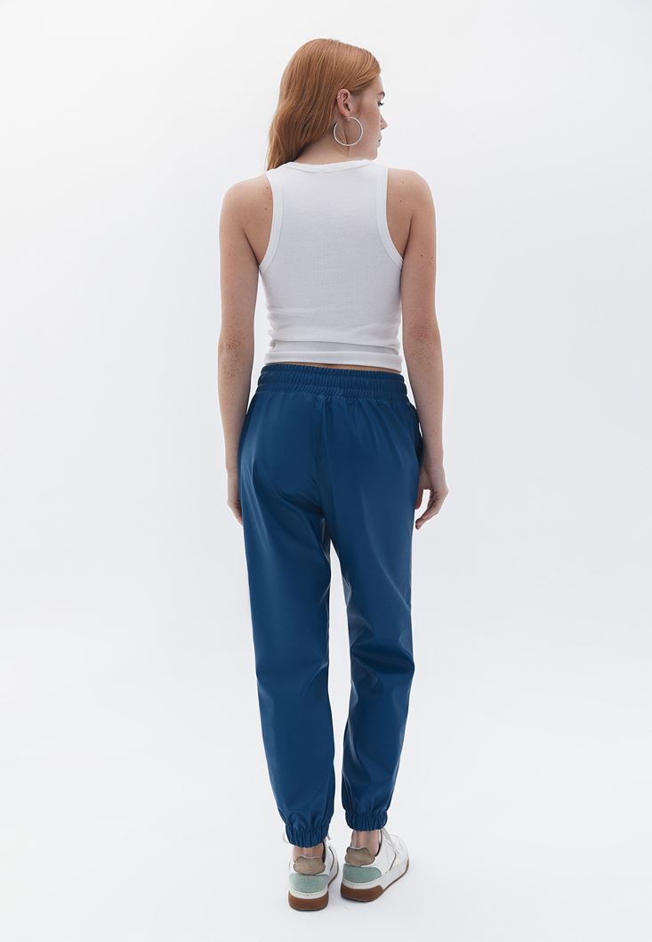 Yüksek Bel Vegan Deri Jogger Pantolon