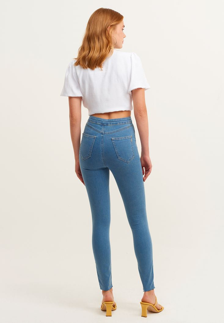 Yaka Detaylı Bluz ve Skinny Pantolon Kombini