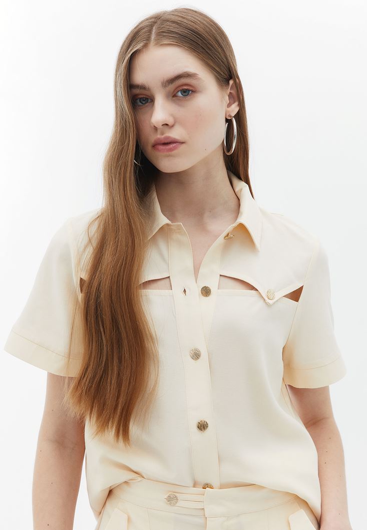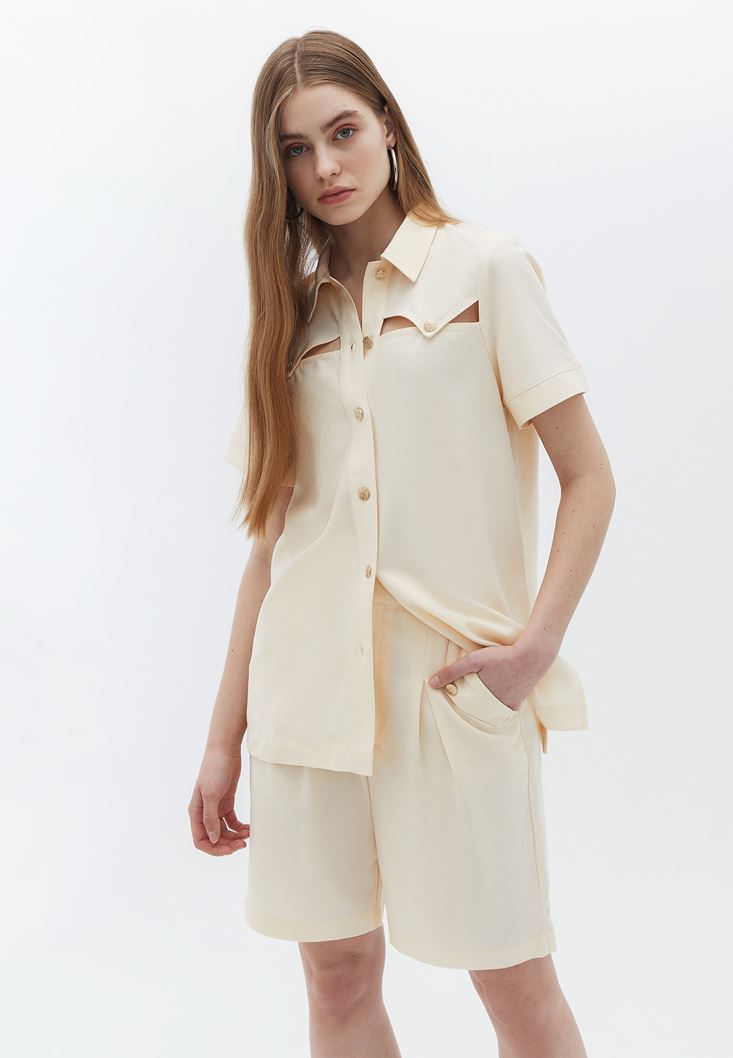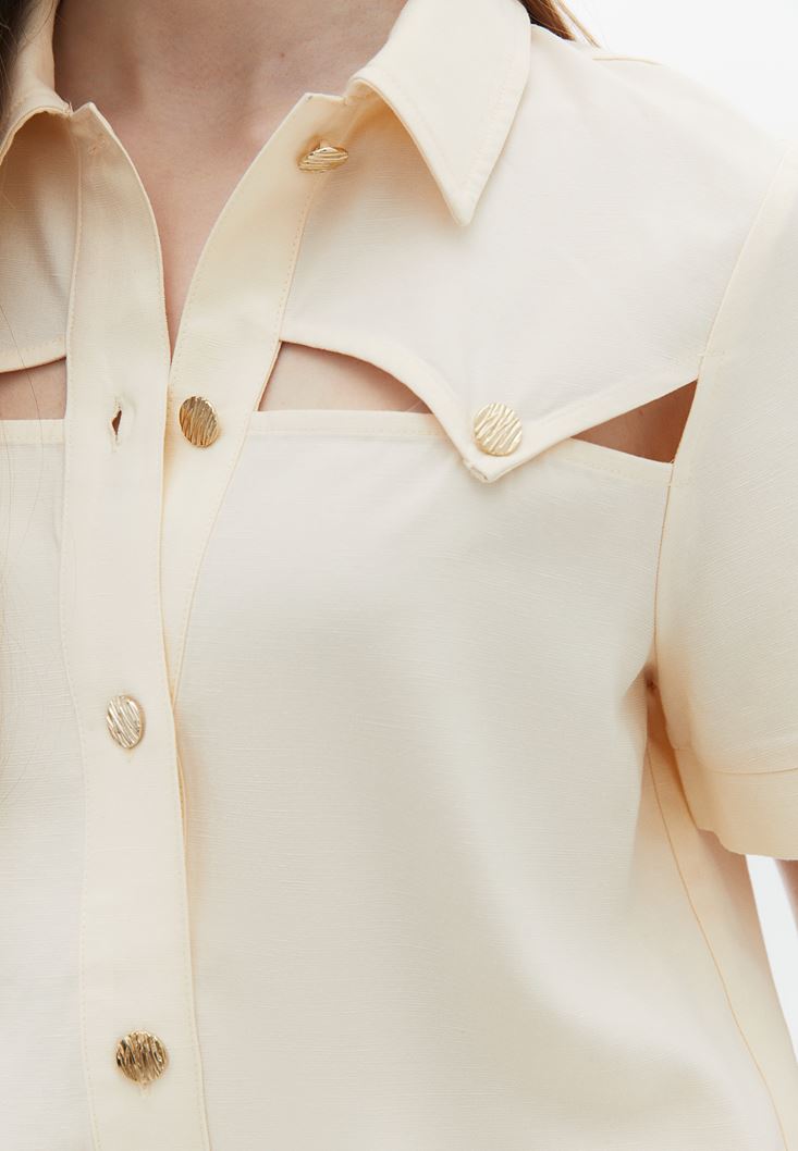 Keten Karışımlı Cut-Out Detaylı Gömlek