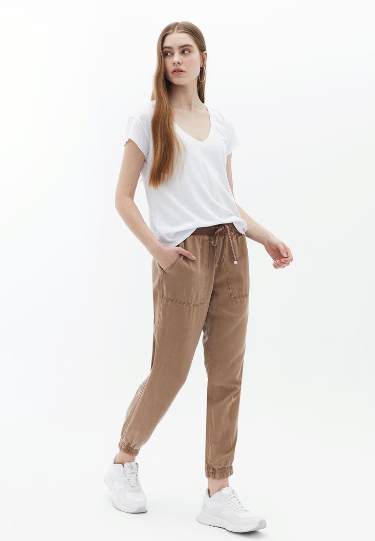 Orta Bel Pantolon ve V Yaka Tişört Kombini