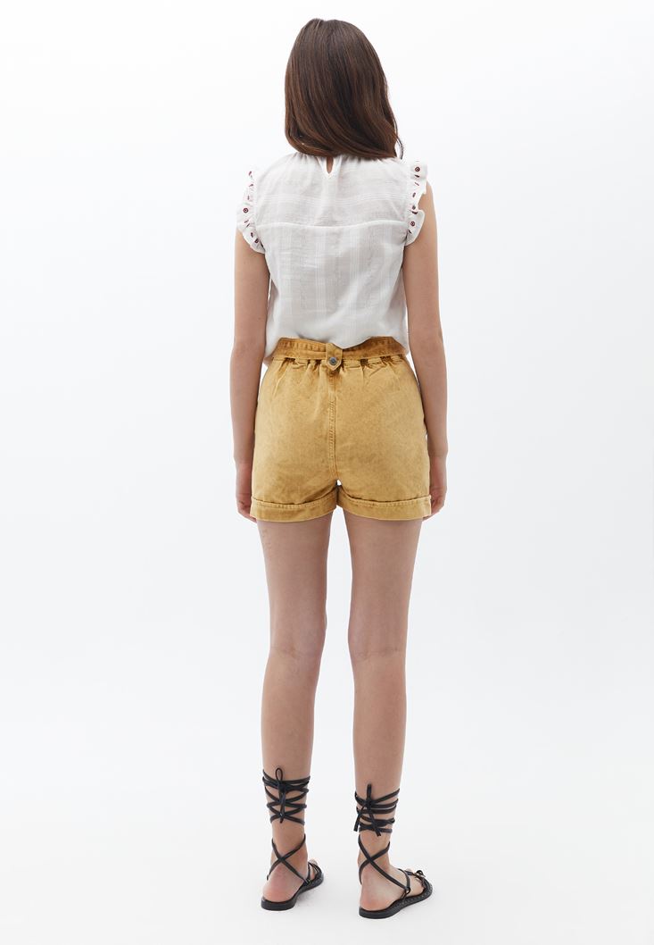 Nakışlı Bluz ve Batik Şort Kombini