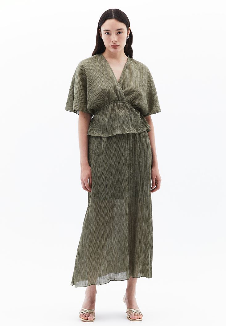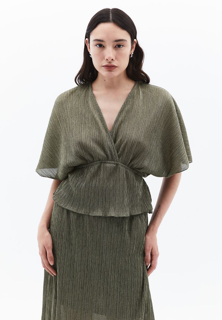 Kruvaze Yaka Bluz ve Gipeli Etek Kombini