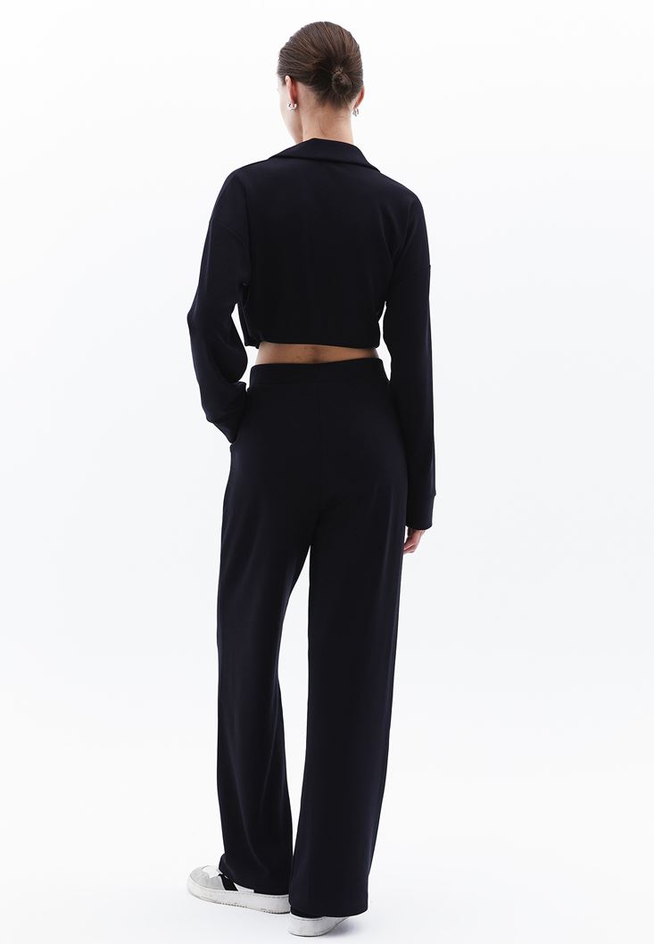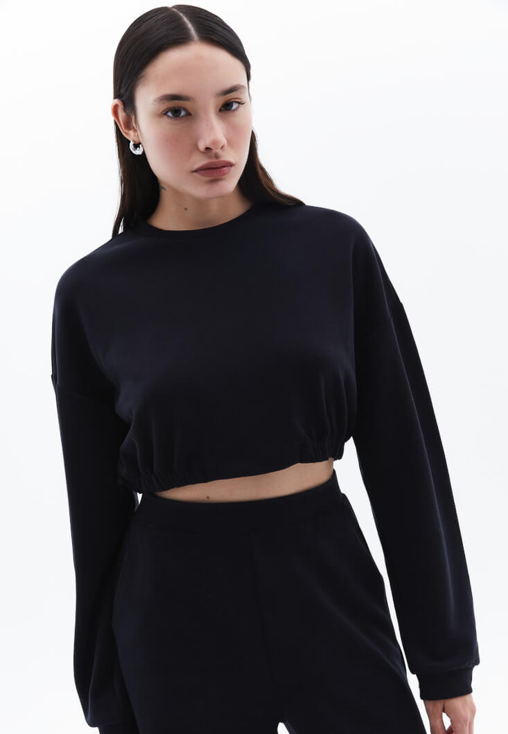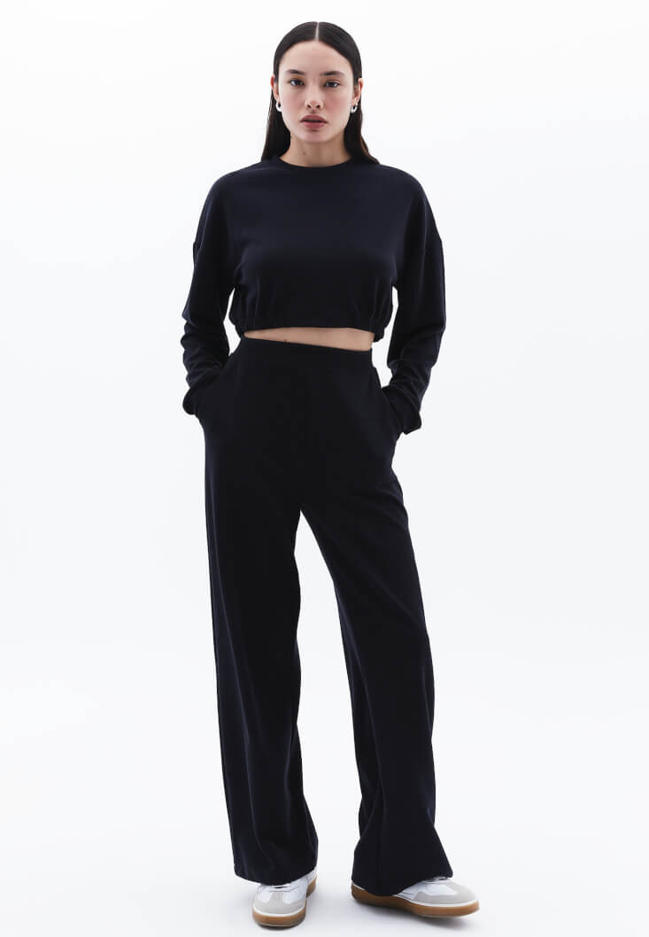Sıfır Yaka Crop Sweatshirt ve Pantolon Kombini