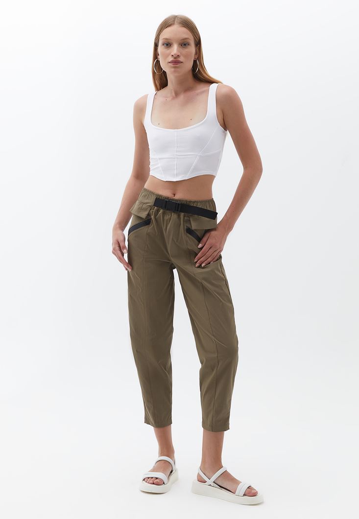 Pamuklu Atlet ve Tokalı Pantolon Kombini
