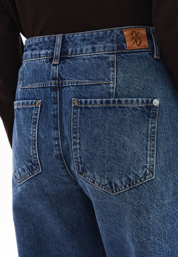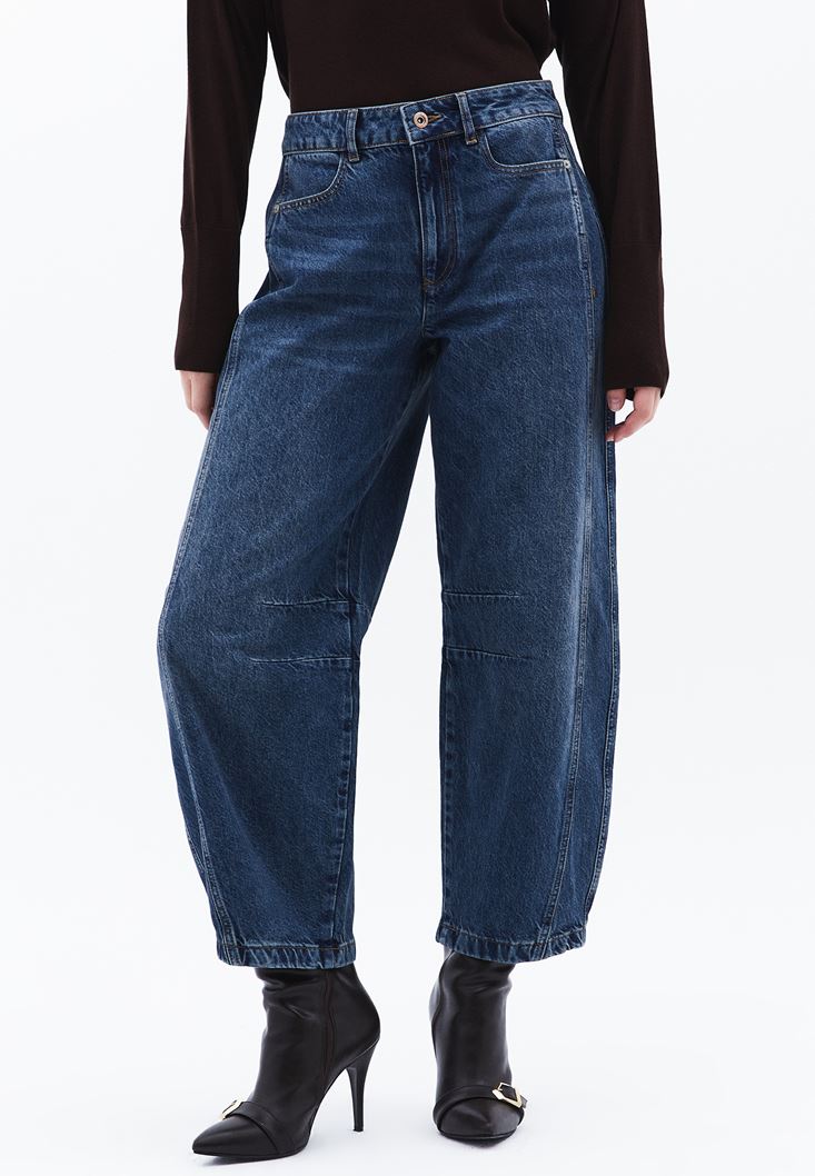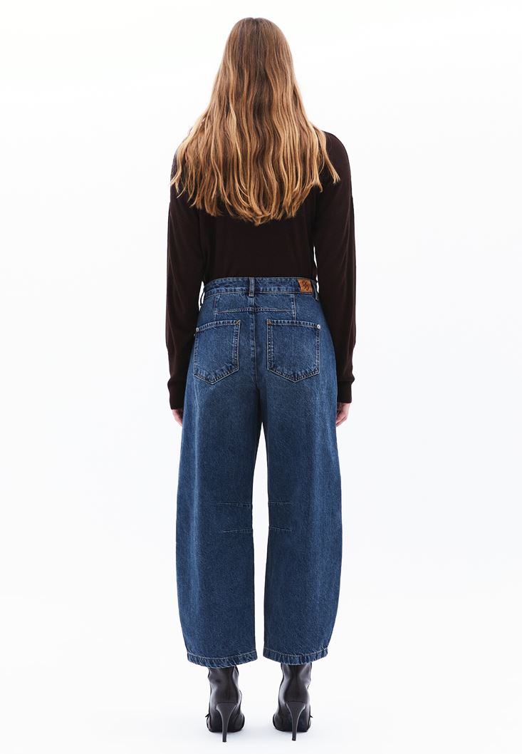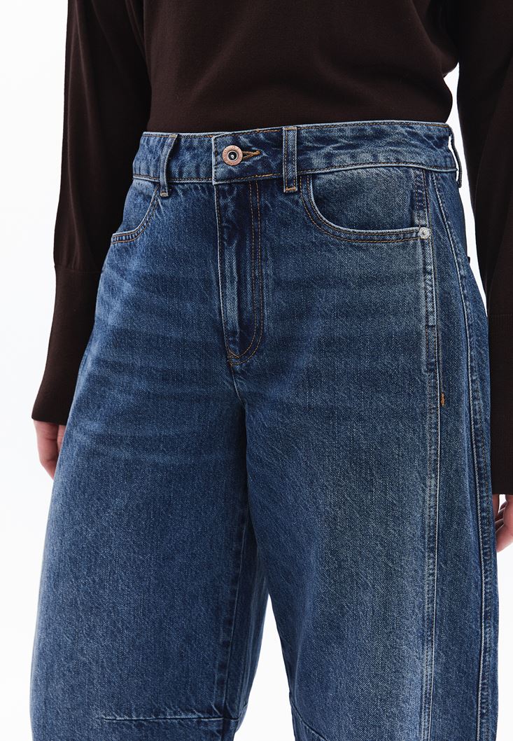 Orta Bel Barrel-Fit Denim Pantolon