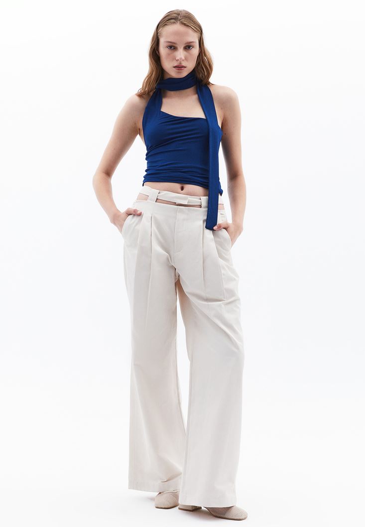 Düşük Bel Wide-Leg Pantolon