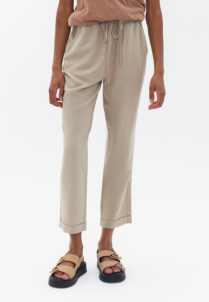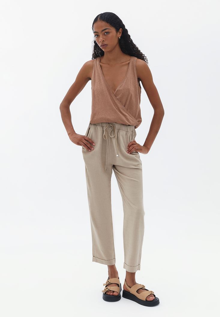 Boru Paça Pantolon ve Keten Bluz Kombini