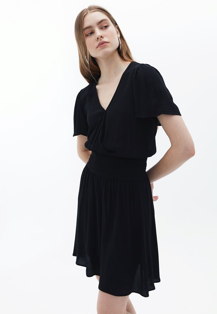 Kruvaze Mini Elbise ve Sandalet Kombini