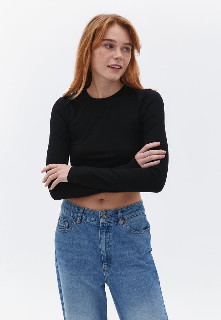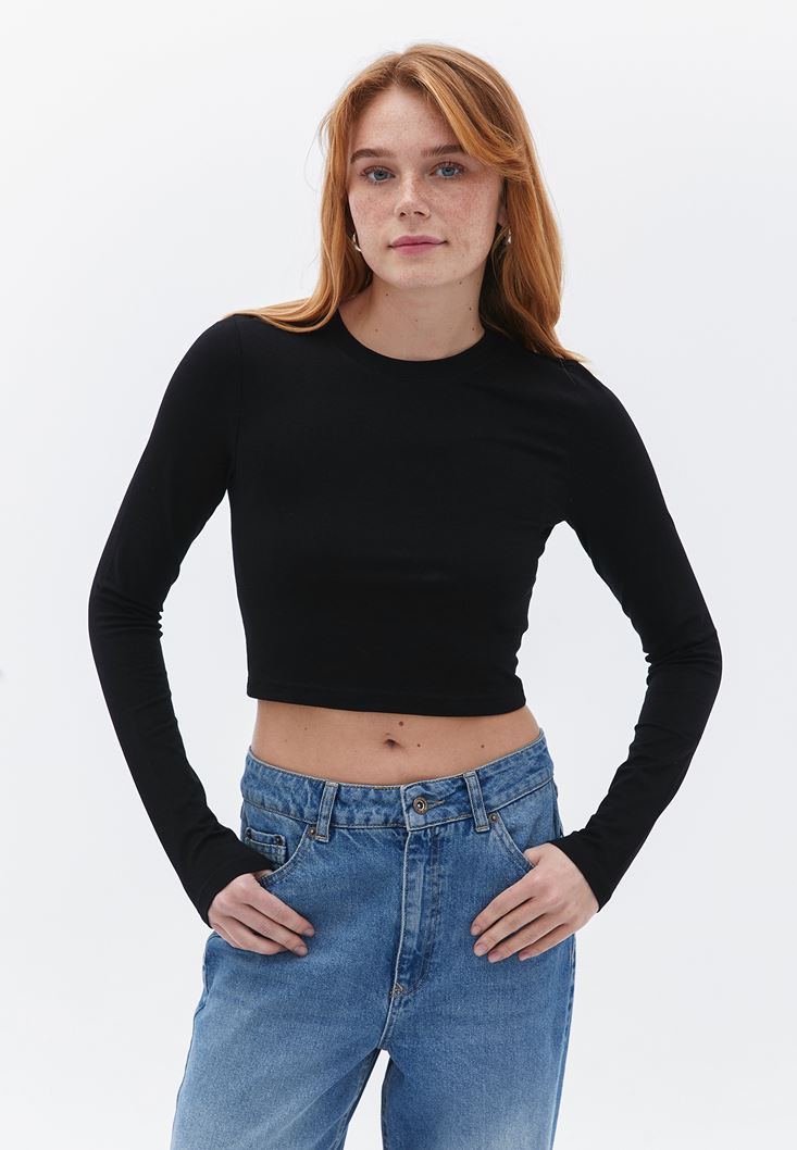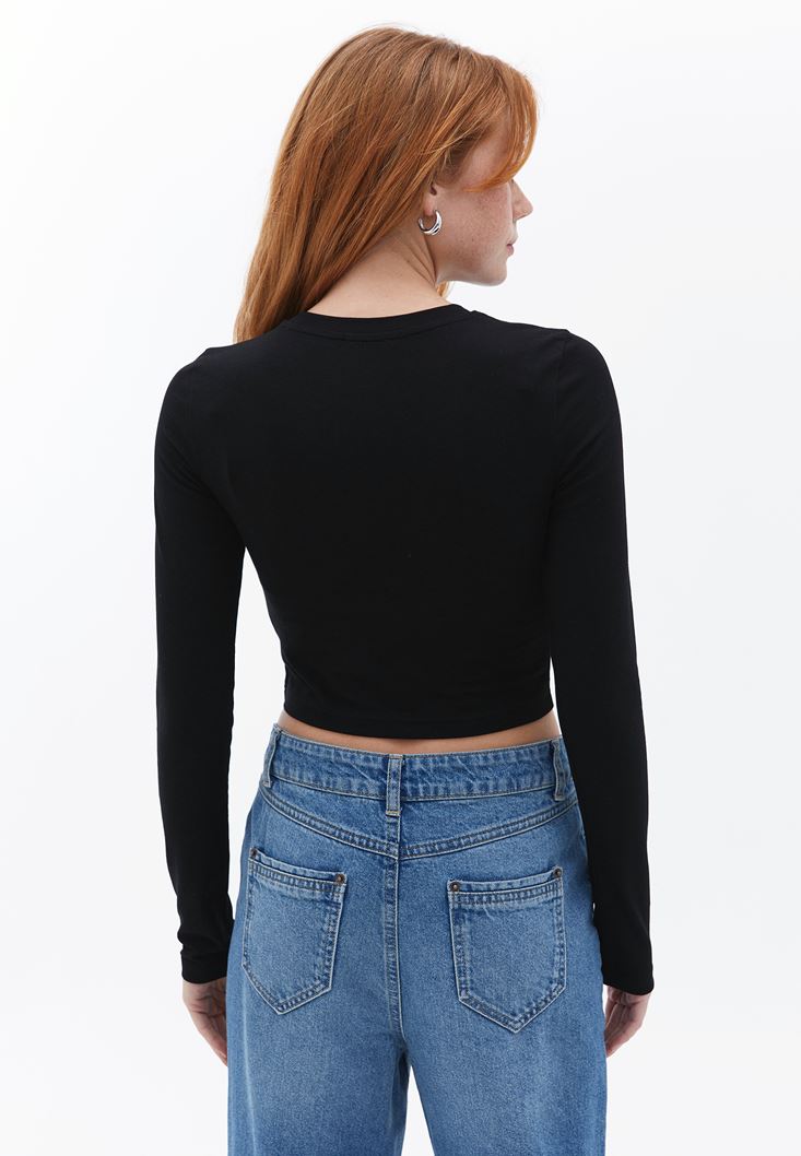 Pamuklu Crop Tişört ve Bootcut Pantolon Kombini