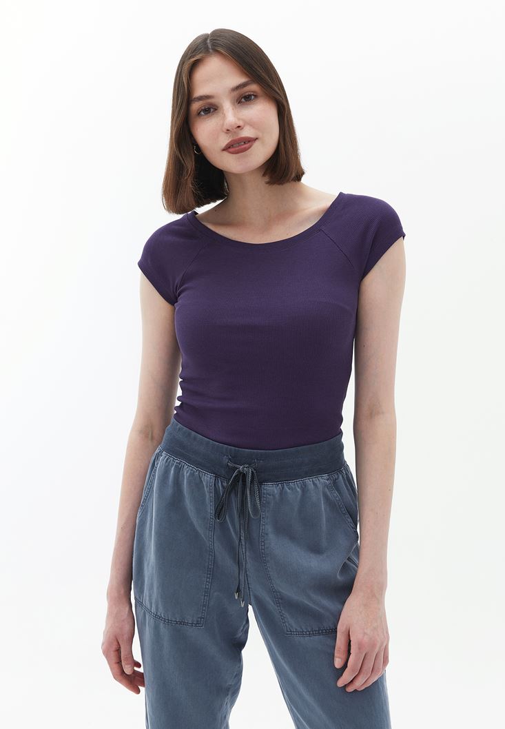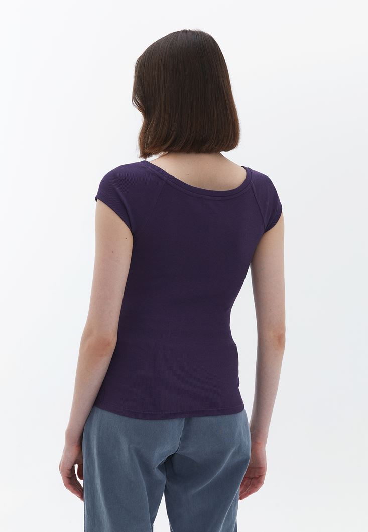 Bot Yaka Tişört ve Orta Bel Pantolon Kombini