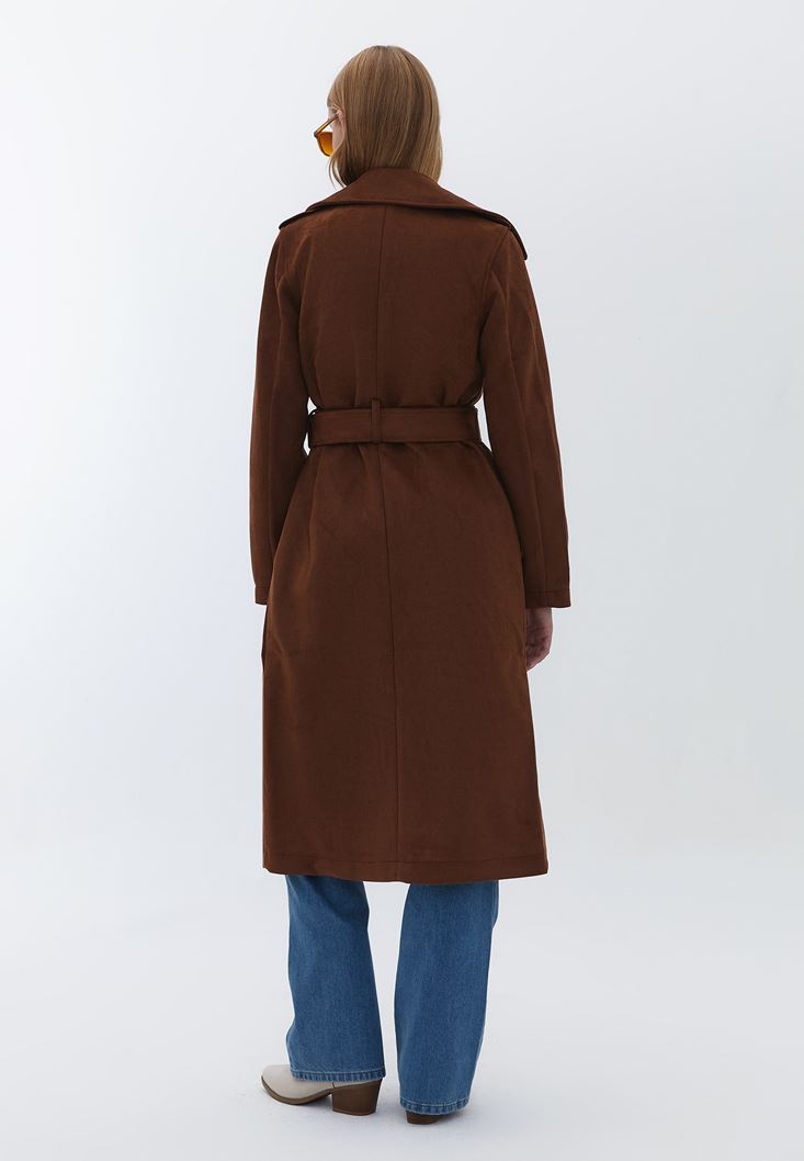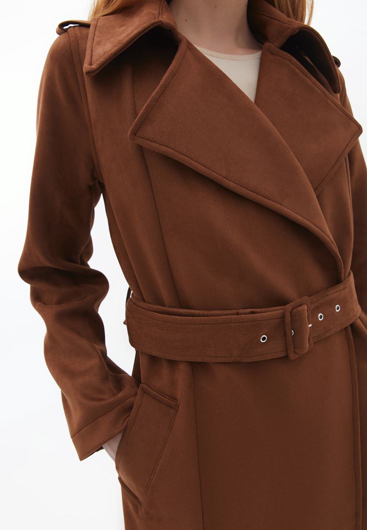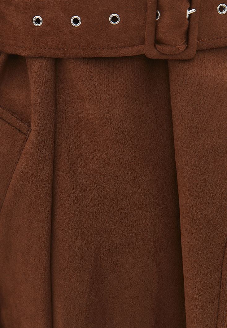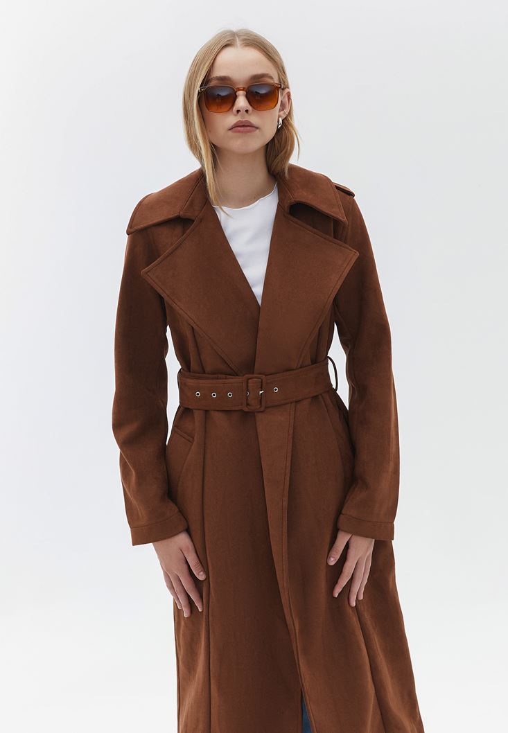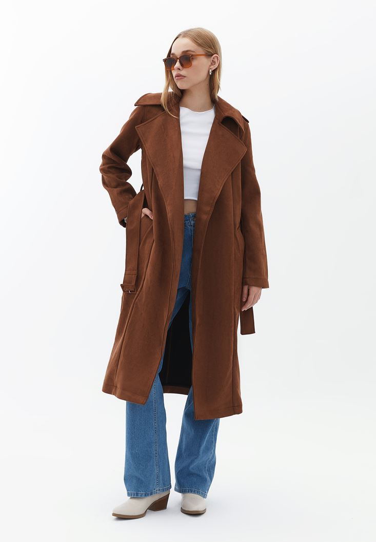 Kemerli Süet Trençkot ve Pantolon Kombini