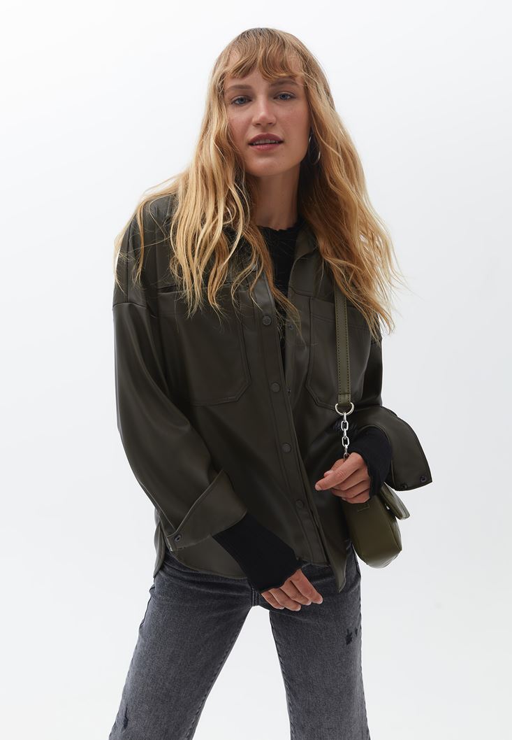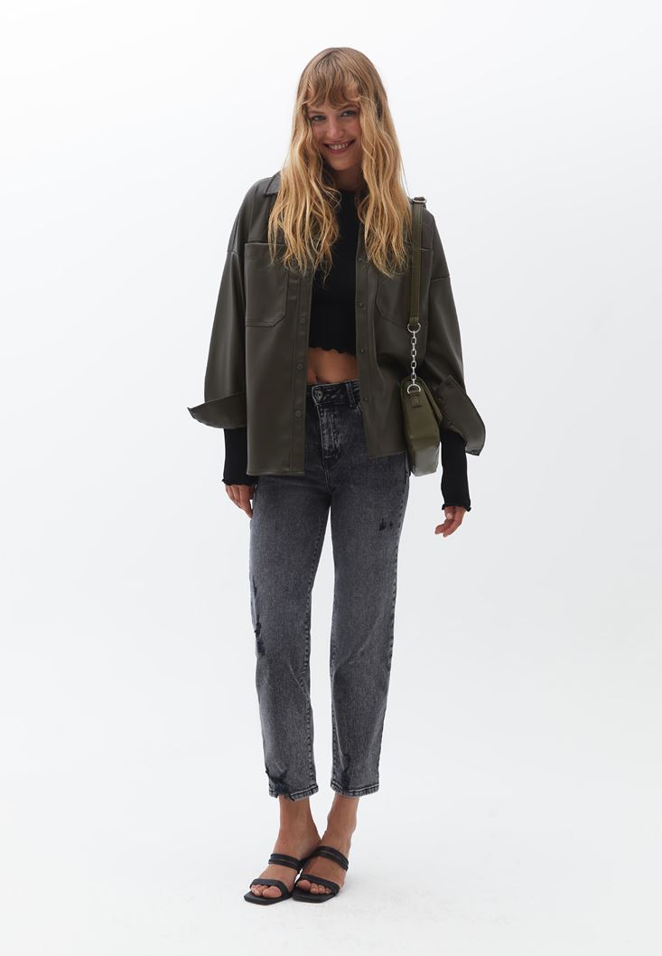 Vegan Deri Gömlek ve Mom Pantolon Kombini
