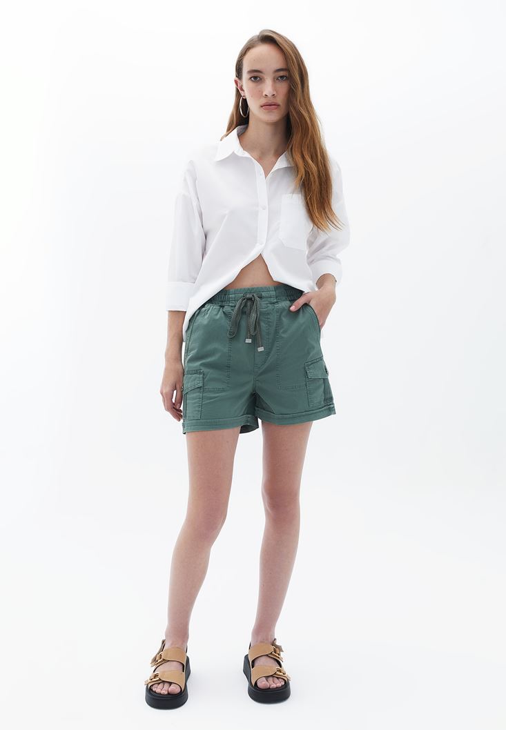 Cepli Mini Şort ve Poplin Gömlek Kombini