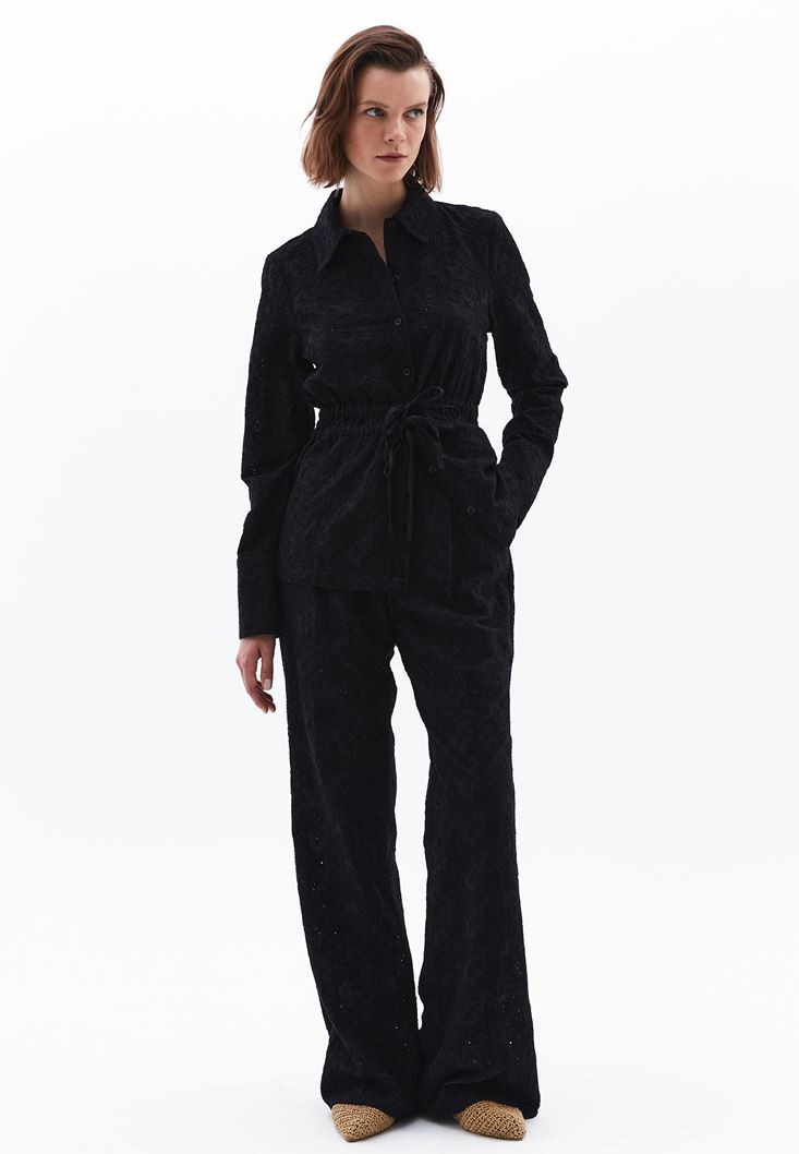 Flare Pantolon ve Brodeli Gömlek Kombini
