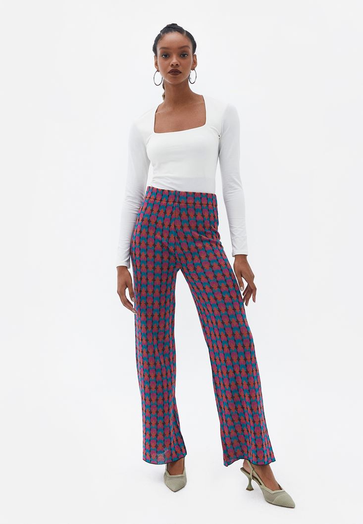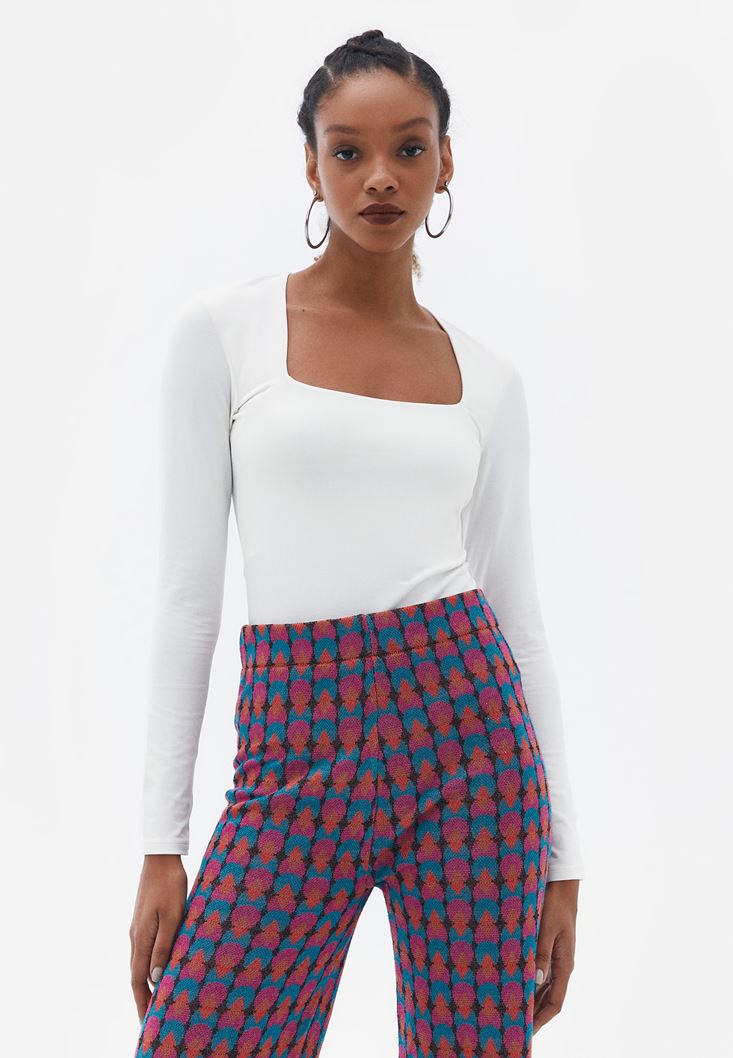 Kare Yaka Atlet ve Desenli Pantolon Kombini