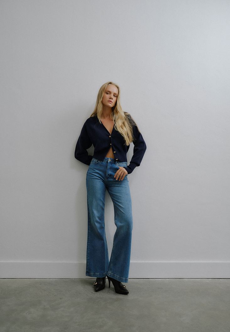 Yüksek Bel Pantolon ve Crop Top Kombini