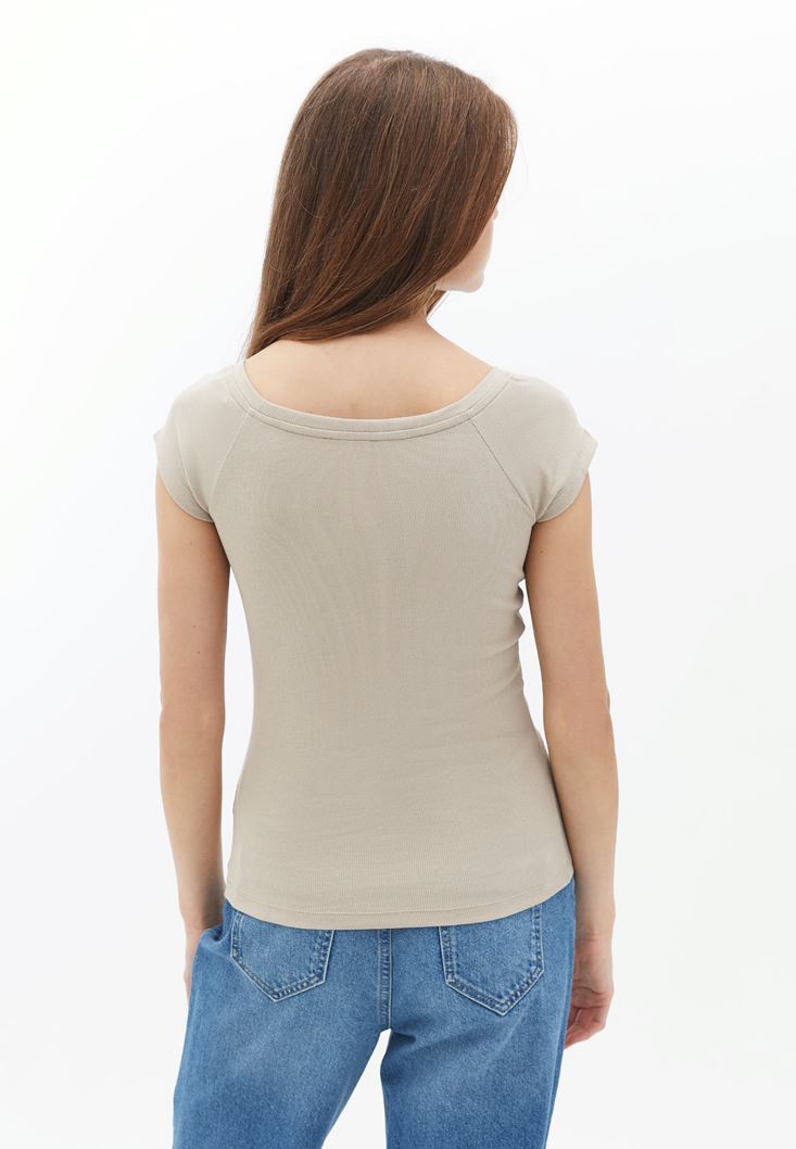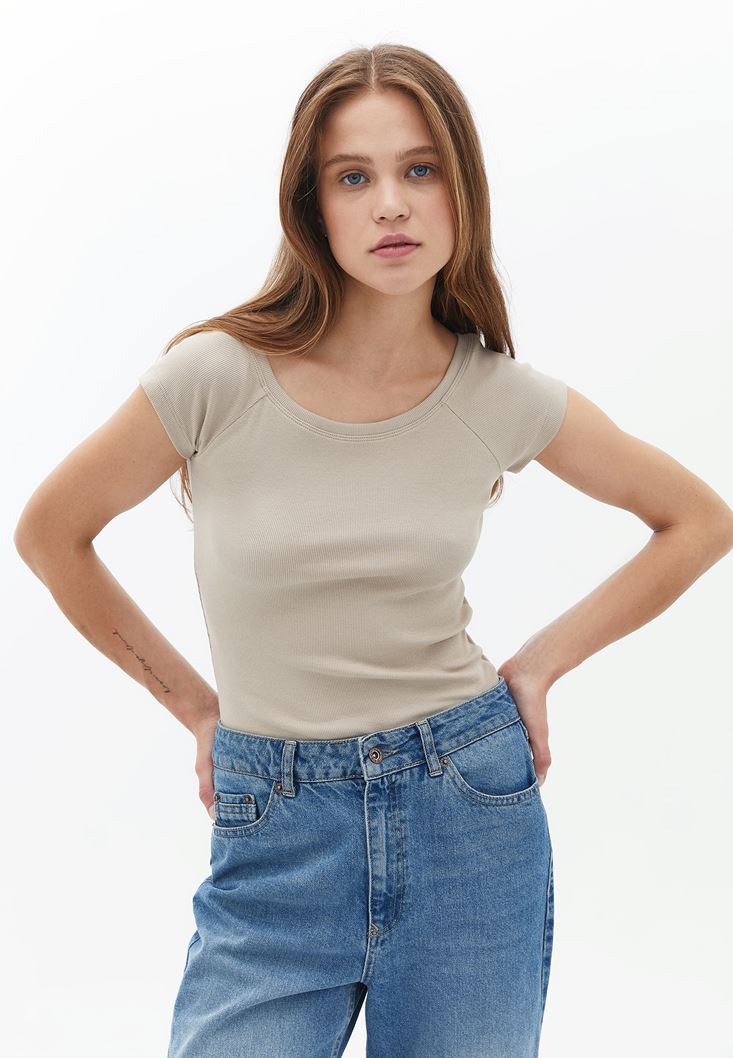 Pamuklu Bot Yaka Tişört