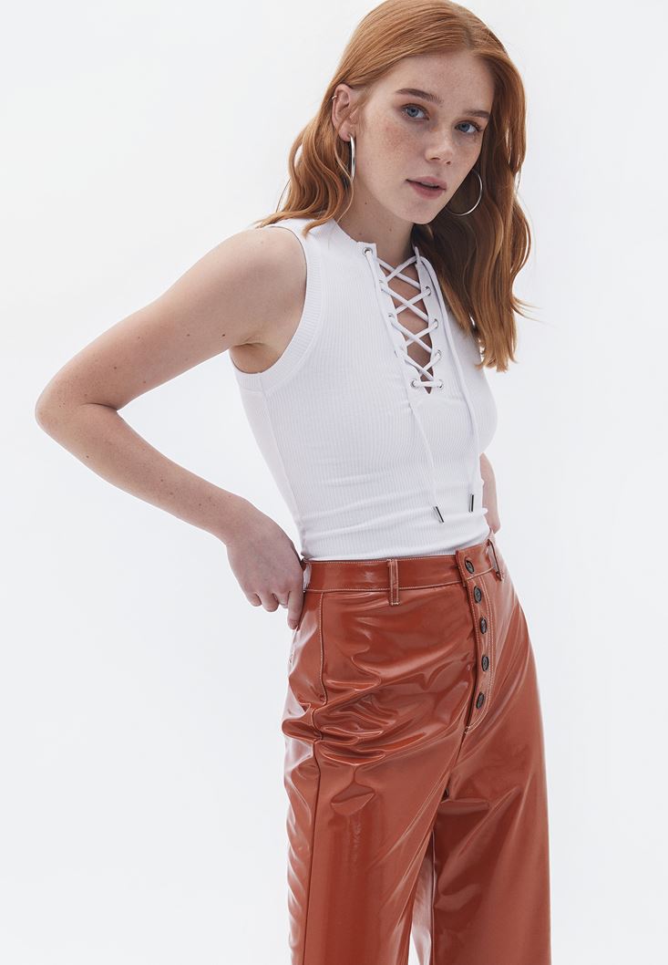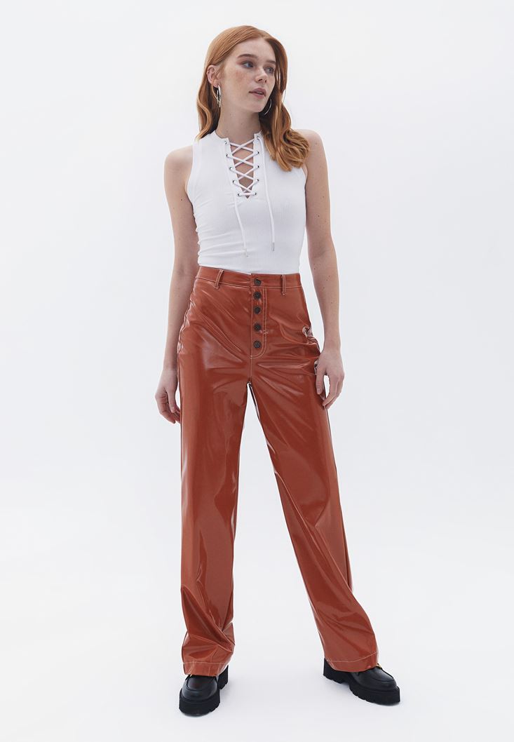 Crop Atlet ve Vegan Deri Pantolon Kombini
