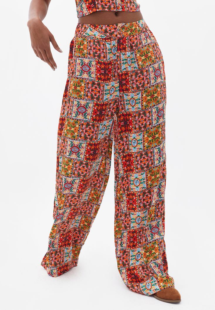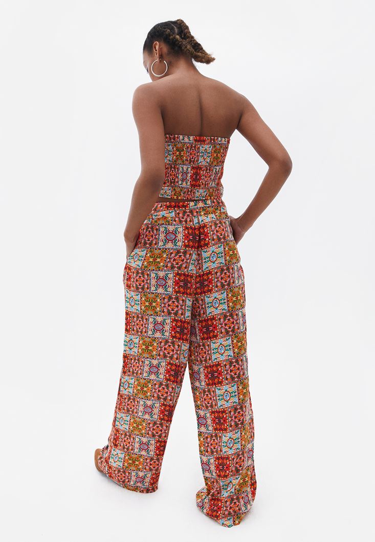 Desenli Pantolon ve Crop Top Kombini