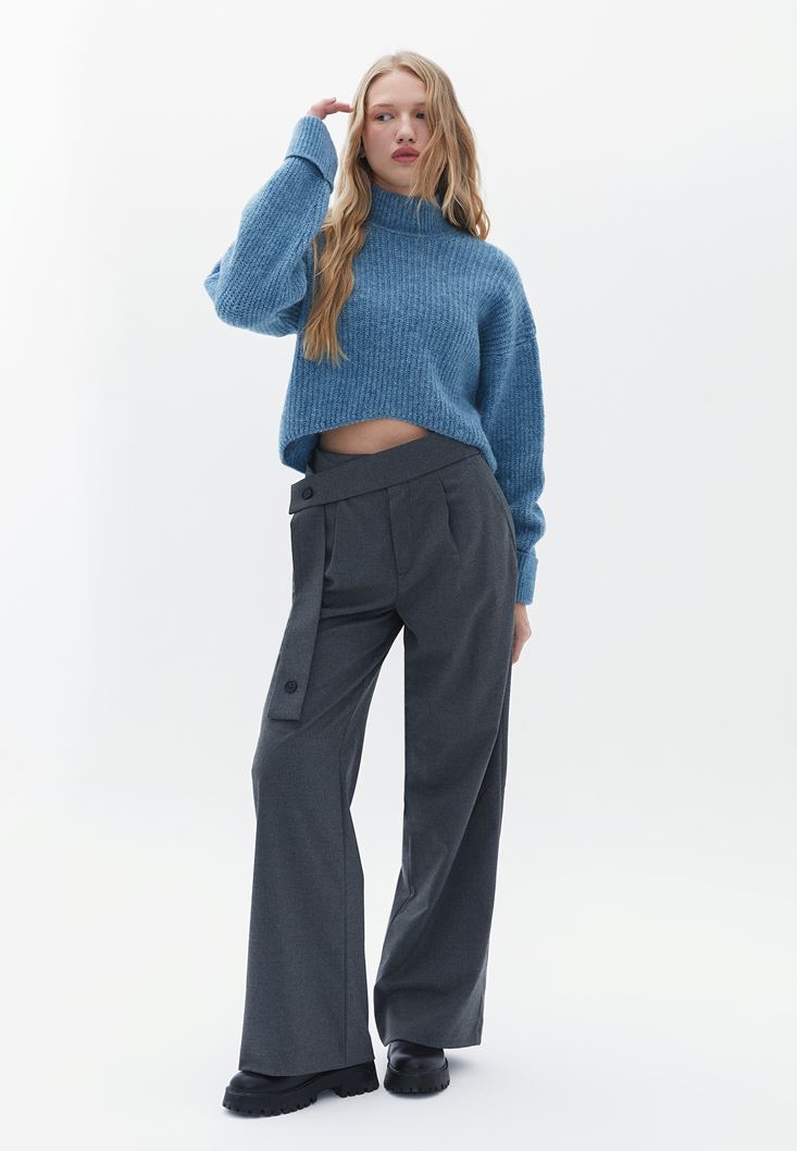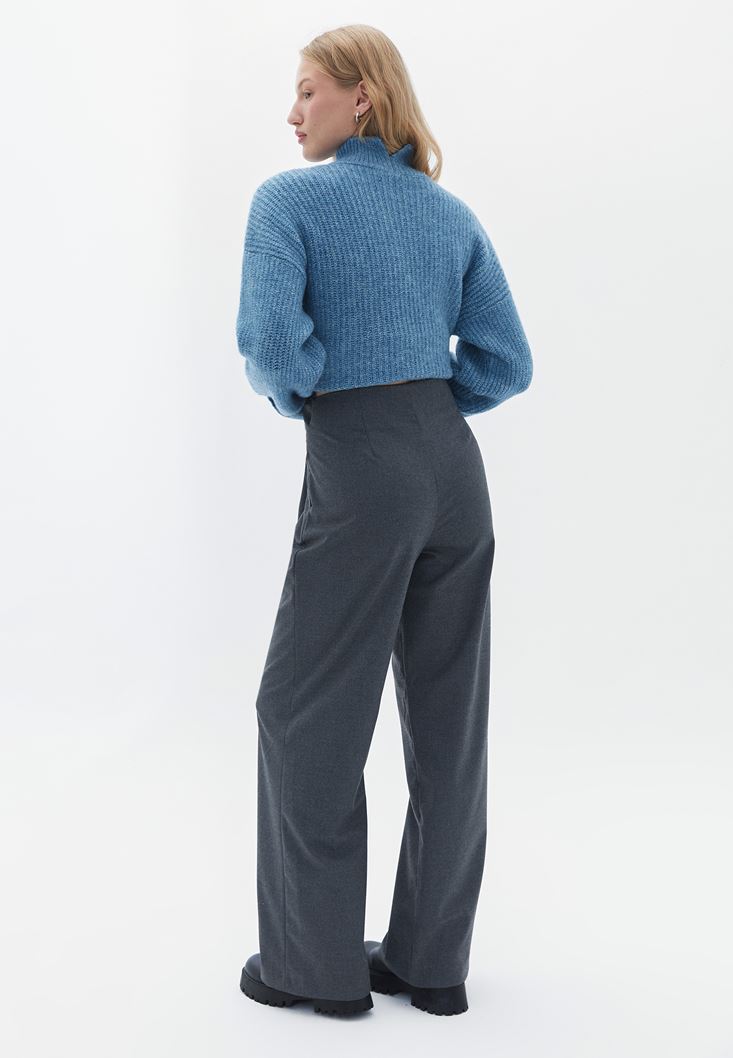 Yüksek Bel Pantolon ve Crop Kazak Kombini
