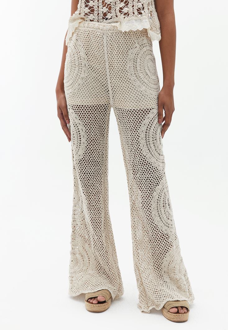 Yüksek Bel Ajurlu Flare Pantolon