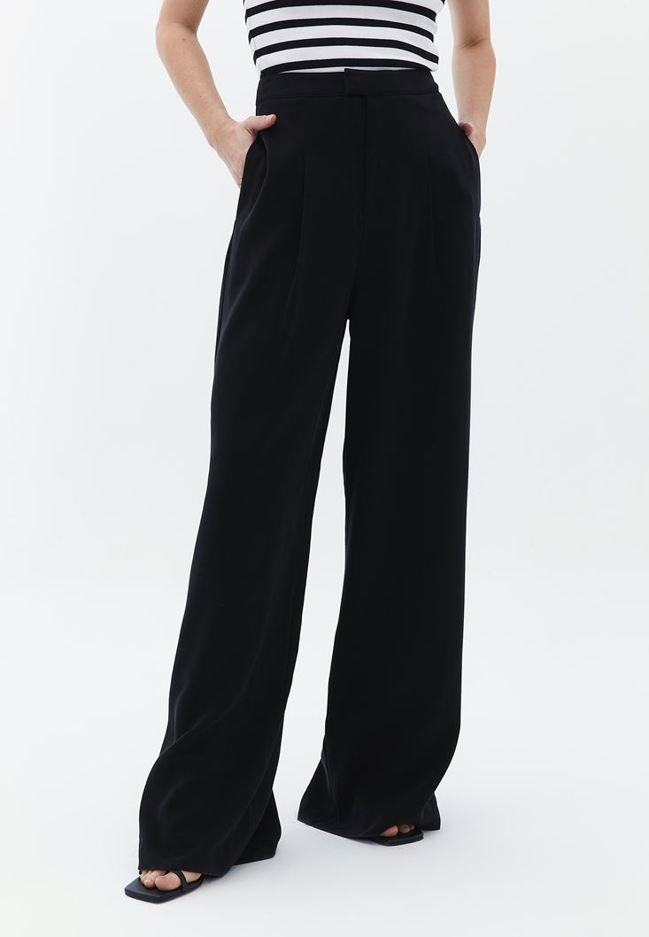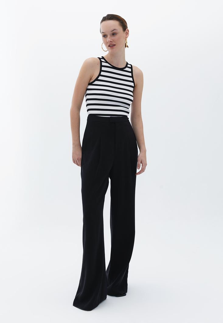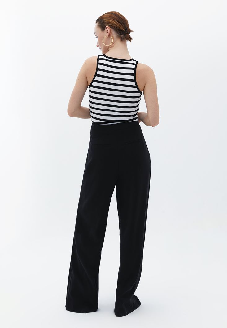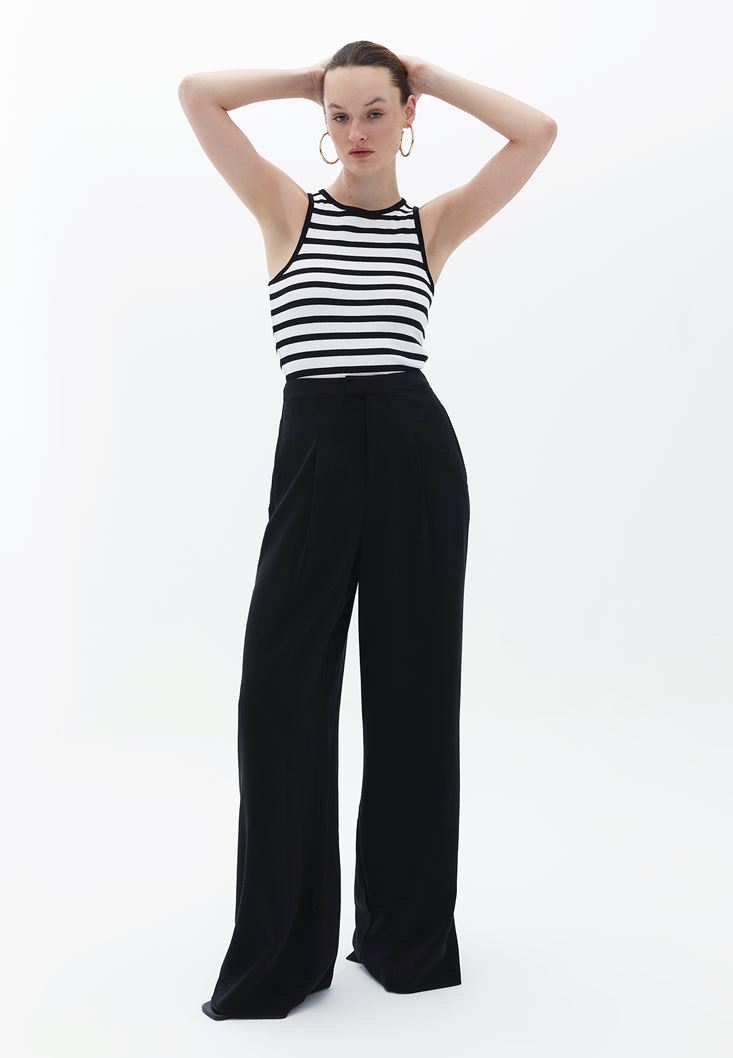 Wide-Leg Pantolon ve Çizgili Atlet Kombini