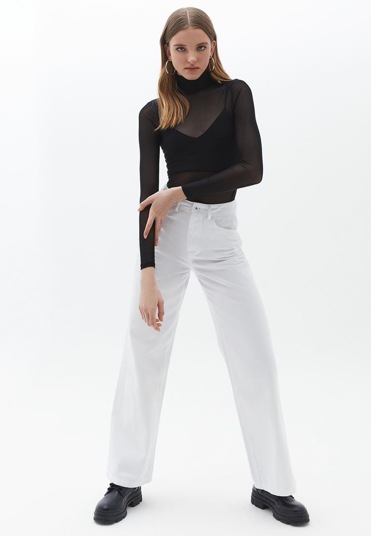 Tül Bluz ve Wide-Leg Pantolon Kombini