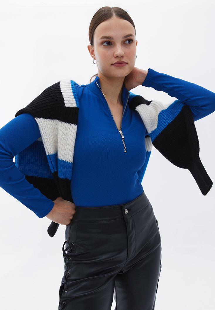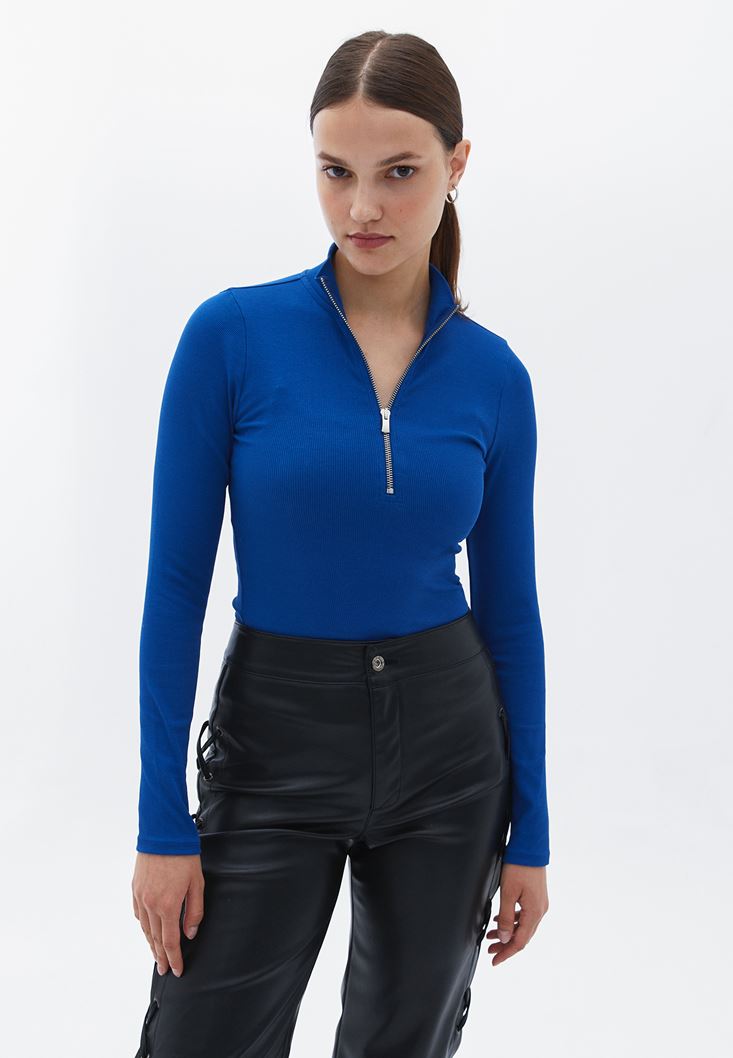 Fermuarlı Tişört ve Deri Pantolon Kombini