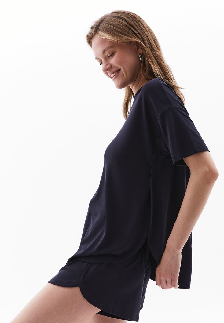 Sıfır Yaka Tişört ve Modal Şort Kombini