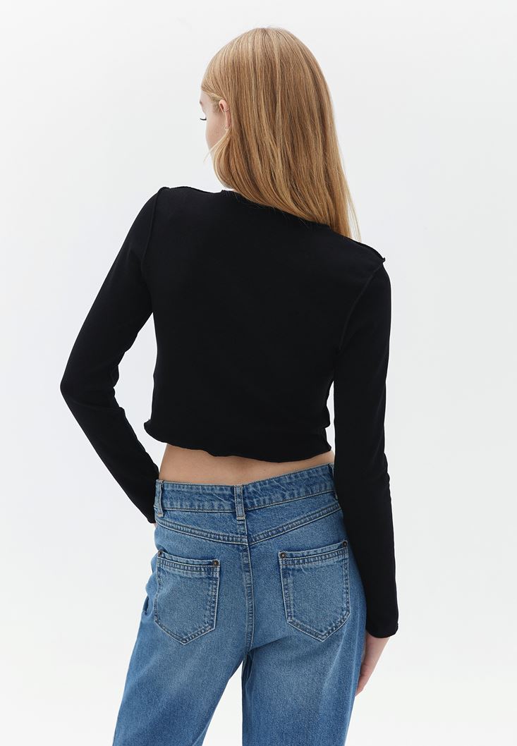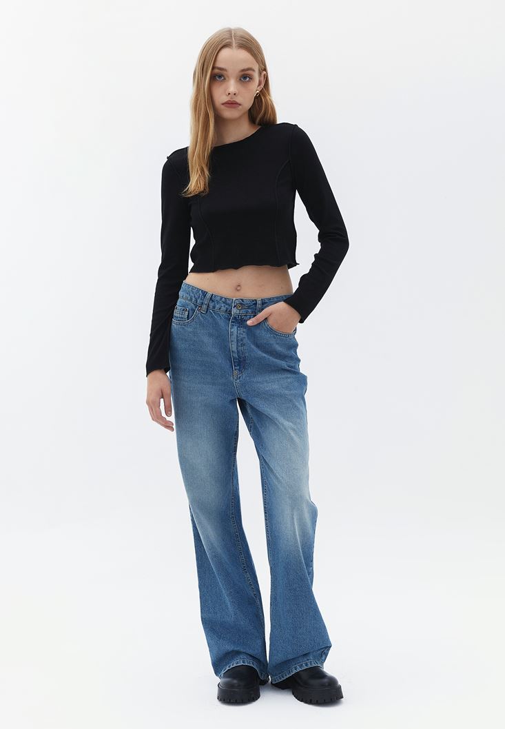 Crop Tişört ve Straight-Fit Denim Pantolon Kombini