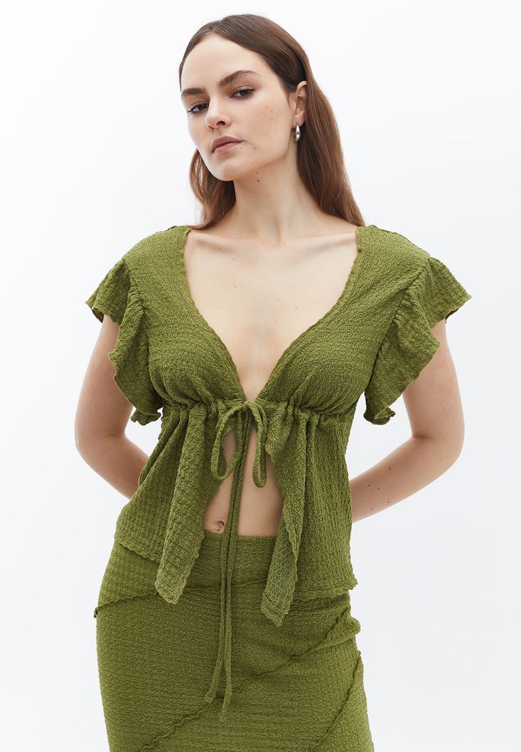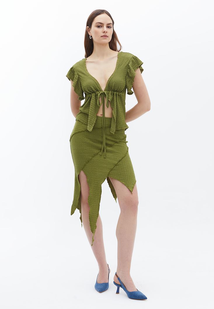 Bağlamalı Bluz ve Asimetrik Etek Kombini